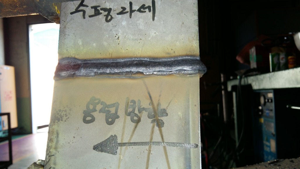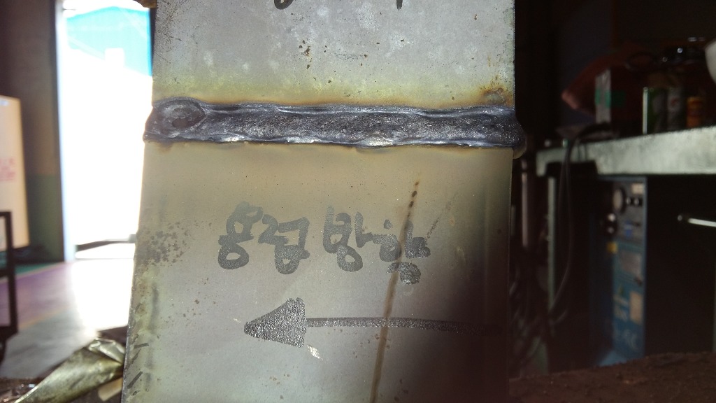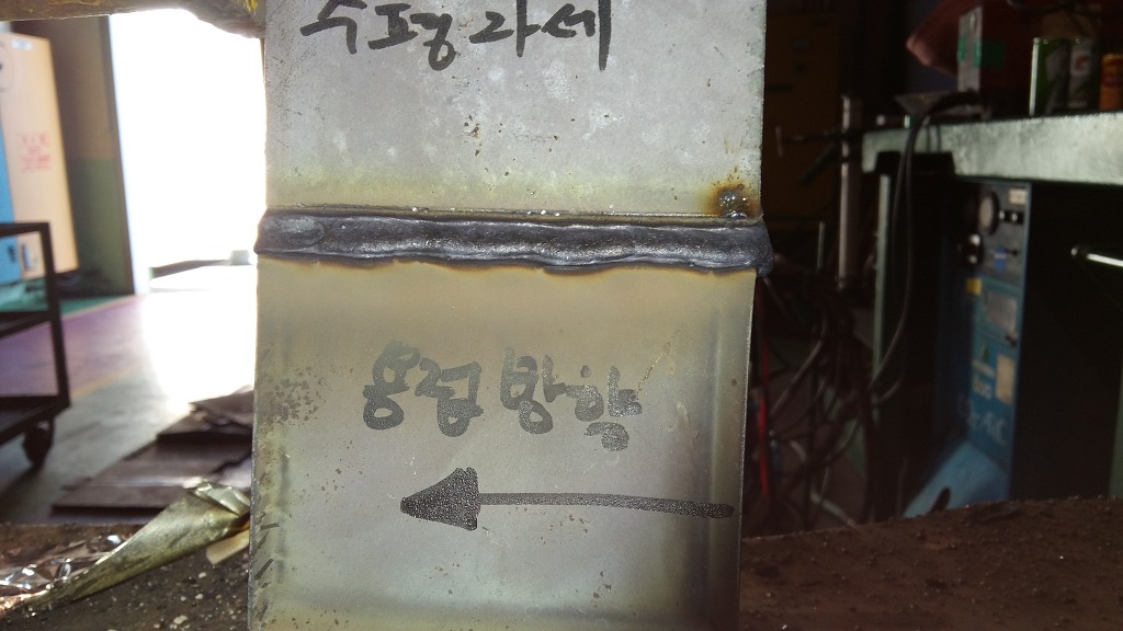 윗방향의 모재을 녹여 아래모재에 용착금속을 접합시키는 것이