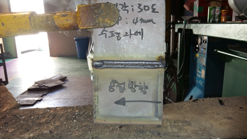 나는 아래모재에 작업각을 두고 용접하길 권유한다.