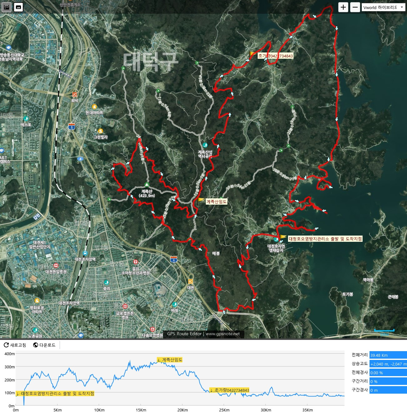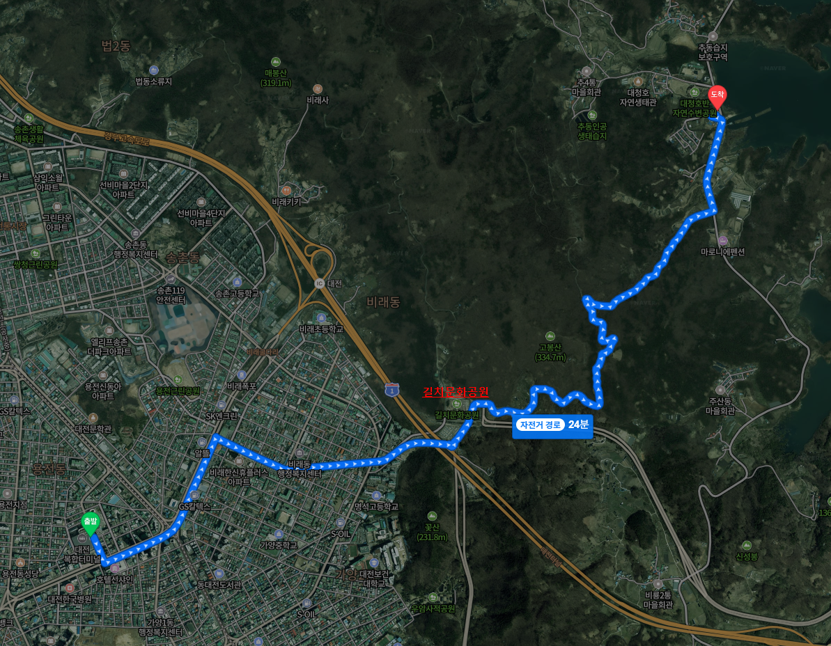 ● 대전복합터미널 - 대청호 오염관리소 주차장 5.7키로 (4월 12일 오전 10시 전 도착) -길치문화공원을 지납니다.