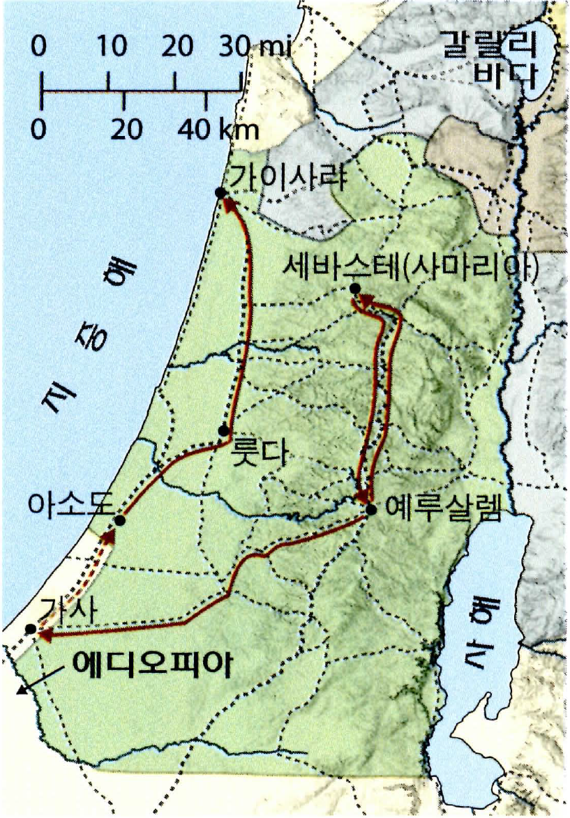 <참고> 전도자 빌립의 사역 (출처: ESV 성경 지도)