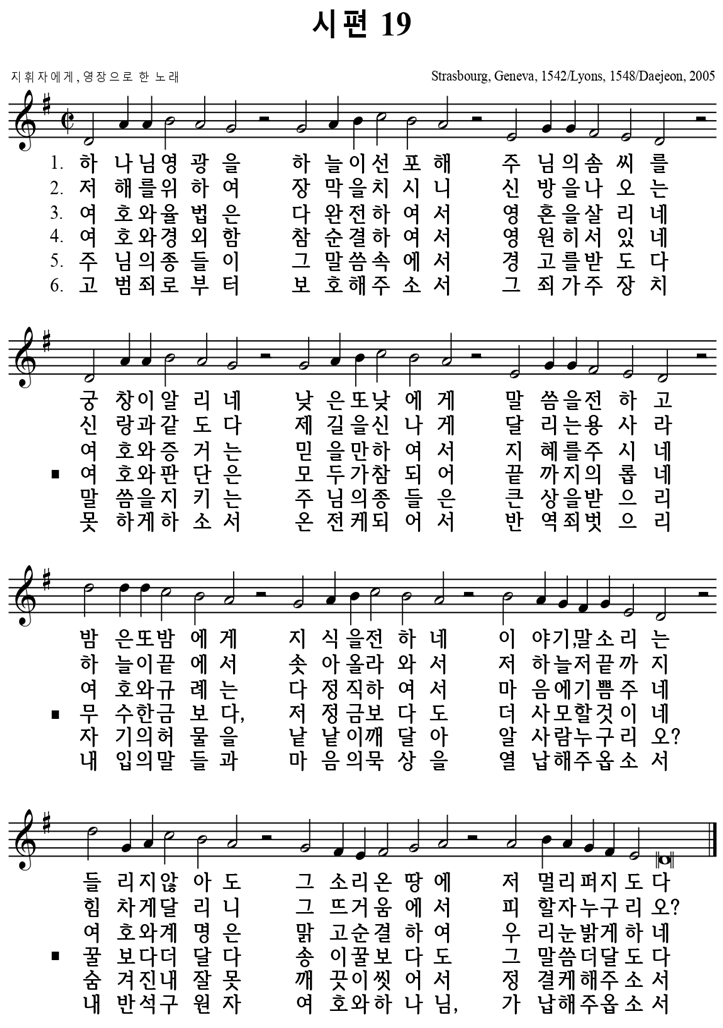 ※ 유튜브에서 “정영철 시편 19편”을 검색해서 들으며 연습하세요.