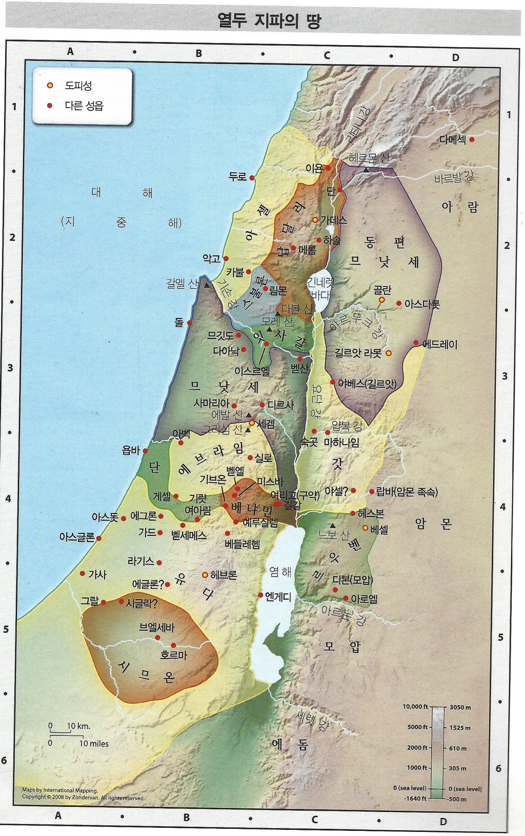 * 동쪽 지파의 땅의 분배, 그리고 나중에 서쪽 가나안 지역 정복후의 땅의 분배는 52페이지의 지도 참조