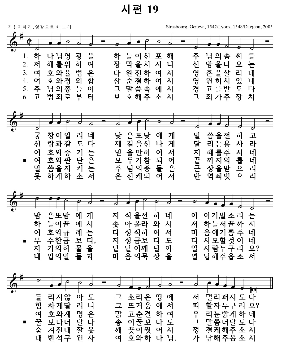 (찬송 시편 19편 – 악보는 맨 뒷장에)