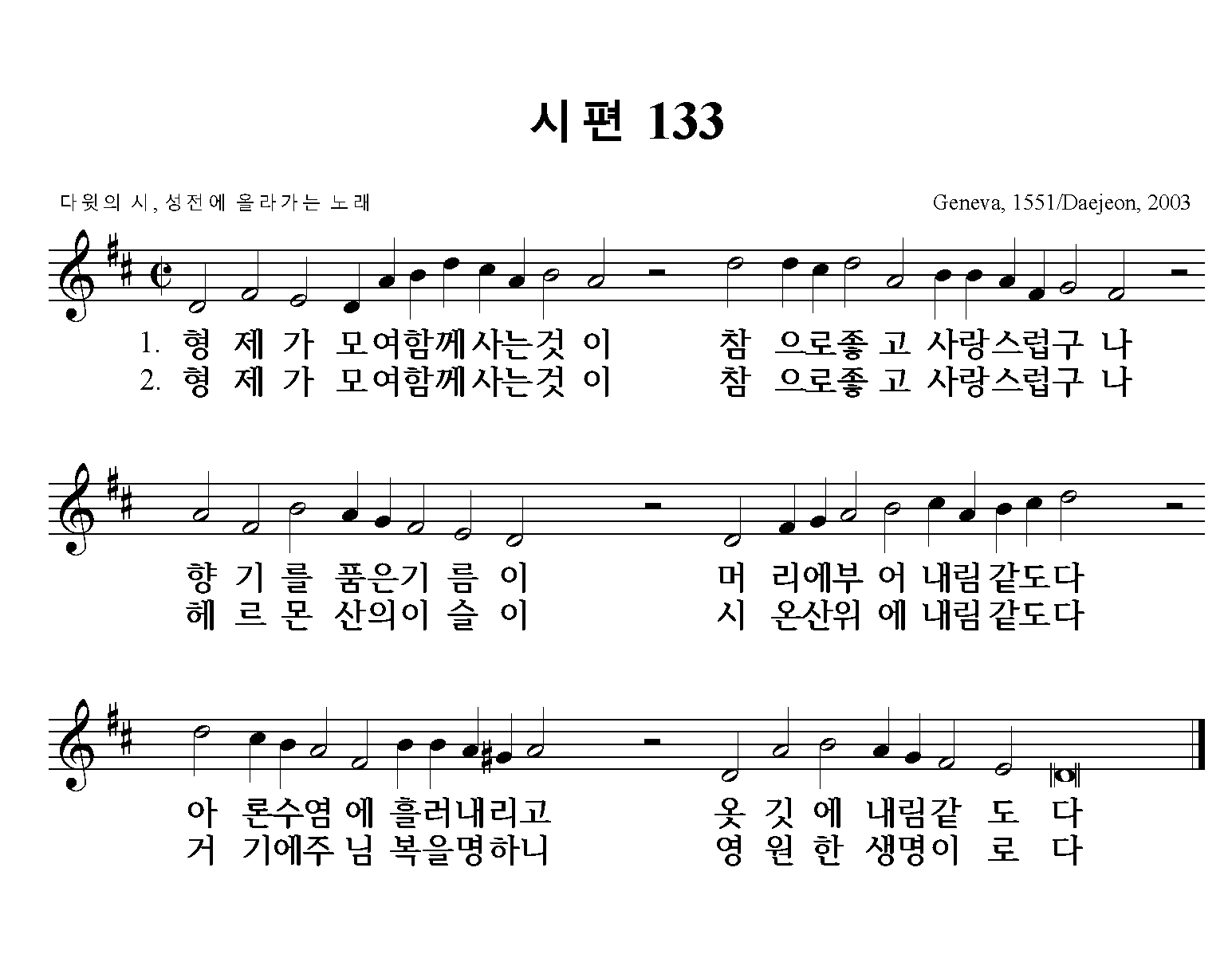 ※ 유튜브에서 “정영철 시편 133편”을 찾아 들으며 연습하세요.