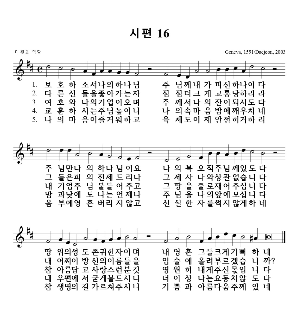 (찬송 시편 16편 – 악보는 맨 뒷장에)