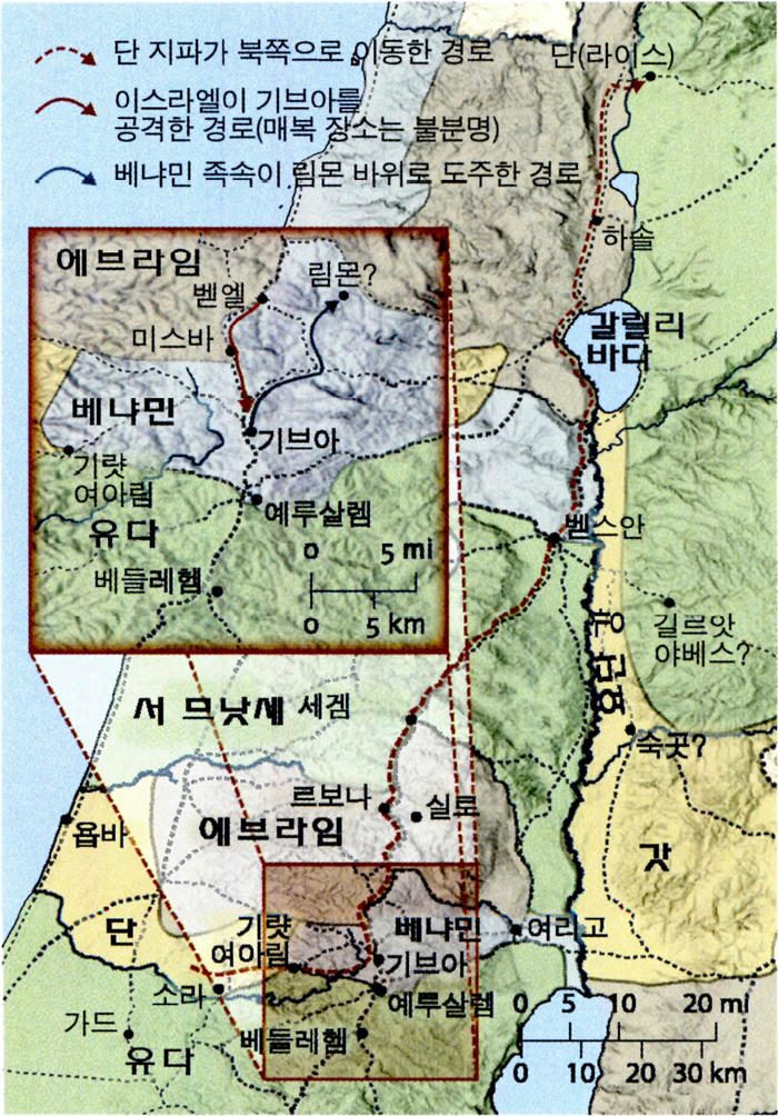 <참고> 단 지파의 이동 (출처: ESV 성경 지도)