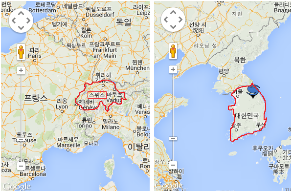 한국과 스위스 면적 비교.. 작성자회장님|작성시간15.04.21|조회수1,783 목록 댓글 1 글자크기 작게가 글자크기 크게가 스위스 면적: 41,277 ㎢ 대한민국 면적: 99,720 ㎢ 다음검색 현재 게시글 추가 기능 열기 북마크 공유하기 신고 센터로 신고 댓글 댓글 1 댓글쓰기 답글쓰기 댓글 리스트 작성자회장님 작성자 본인 여부 작성자 | 작성시간 15.04.21 우리나라 반도 안되는 면적이네..한 1주일만 여행 간다면 스위스 한바뀌 다 돌수 있겠네..ㅎㅎ 댓글 전체보기
