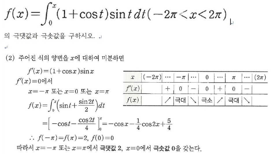 시중 문제집의 문제입니다. 증감표를 이용한 풀이라는것은 알겠는데..