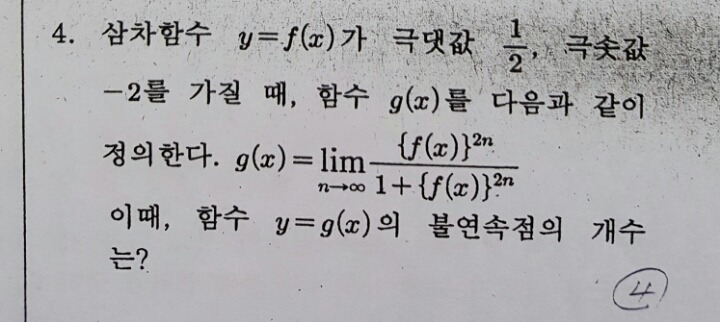 [수학질문]미적분1 도함수의활용 작성자^ㅡ^v갱!|작성시간15.10.09|조회수141 목록 댓글 2 글자크기 작게가 글자크기 크게가 학교 프린트문제에요.. 답은 필기되어있고..어떻게 푸는지 풀이 방향만이라도 알려주세요..미리 감사합니다(꾸벅) 다음검색 현재 게시글 추가 기능 열기 북마크 신고 센터로 신고 댓글 댓글 2 댓글쓰기 답글쓰기 댓글 리스트 작성자^ㅡ^v갱! 작성자 본인 여부 작성자 | 작성시간 15.10.09 감사합니다^^ 그런데 4번문제에서 극대극소값을 알려준 이유는 뭔가요?? 작성자돌고돌고 | 작성시간 15.10.09 g(x)의 극한값이 f(x)의 값의 범위에 따라 결정되기 때문입니다. 댓글 전체보기