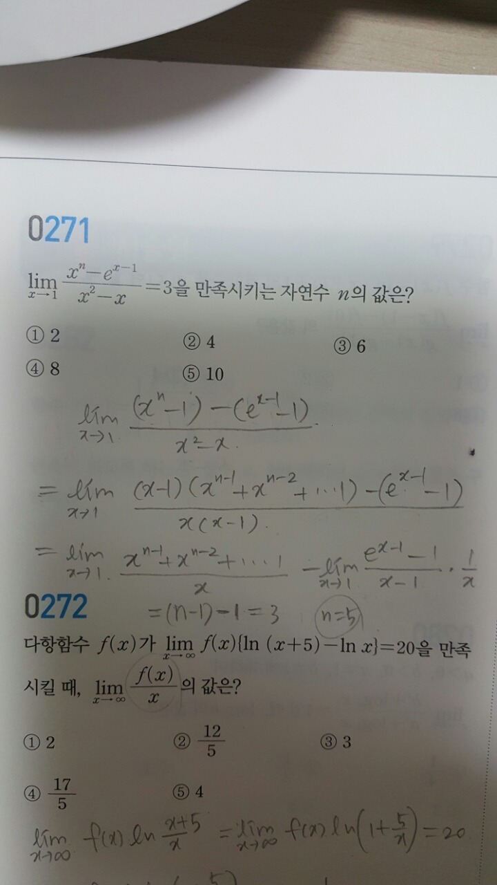 [수학질문]메세지 미적분2 271번 질문입니다 작성자^ㅡ^v갱!|작성시간15.10.11|조회수312 목록 댓글 2 글자크기 작게가 글자크기 크게가 답지에 (n-1)×1=3이므로 n=4라고 나왔네요.. 제가 푼게 어디에 오류가 있을까요? 다음검색 현재 게시글 추가 기능 열기 북마크 신고 센터로 신고 댓글 댓글 2 댓글쓰기 답글쓰기 댓글 리스트 작성자교주 | 작성시간 15.10.11 왼쪽꺼에서 (n-1) 이 아니고 n..분자에 x^(n-1)부터 1 까지 있으니 n개가 더해집니다.. 답댓글 작성자^ㅡ^v갱! 작성자 본인 여부 작성자 | 작성시간 15.10.11 감사합니다^^ 댓글 전체보기