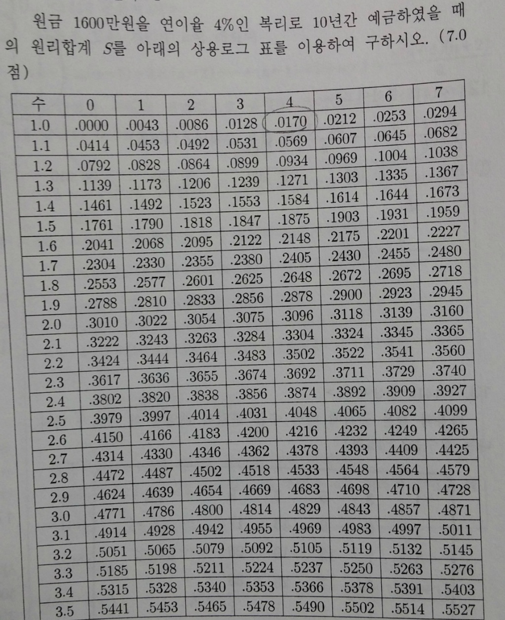 작성자초절정꽃미남 작성시간 15.12.01 log (1600만 x 1.04^10) = 7.3740