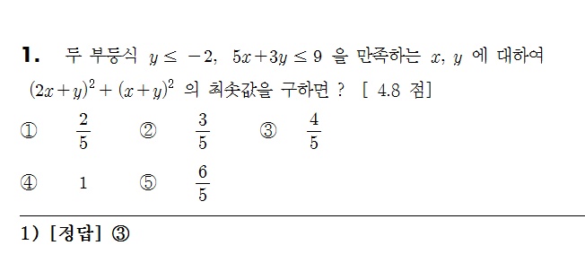 [고1]2016년 신도고 기출문제입니다. 작성자이영희|작성시간18.04.28|조회수139 목록 댓글 3 글자크기 작게가 글자크기 크게가 즐거운 주말 보내시길 바랍니다. 다음검색 현재 게시글 추가 기능 열기 북마크 공유하기 신고 센터로 신고 댓글 댓글 3 댓글쓰기 답글쓰기 댓글 리스트 작성자순두부 | 작성시간 18.04.28 2x+y=X, x+y=Y 연립하여 x=X-Y, y=-X+2Y 식에 대입하여 연립부등식 구하고 X^2+Y^2=k 라 하고 구해보세요 3번 나옴 작성자빙고 | 작성시간 18.04.28 이미지 확대 작성자이영희 작성자 본인 여부 작성자 | 작성시간 18.04.28 친절한 설명 감사드립니다. 즐거운 주말 보내세여 댓글 전체보기