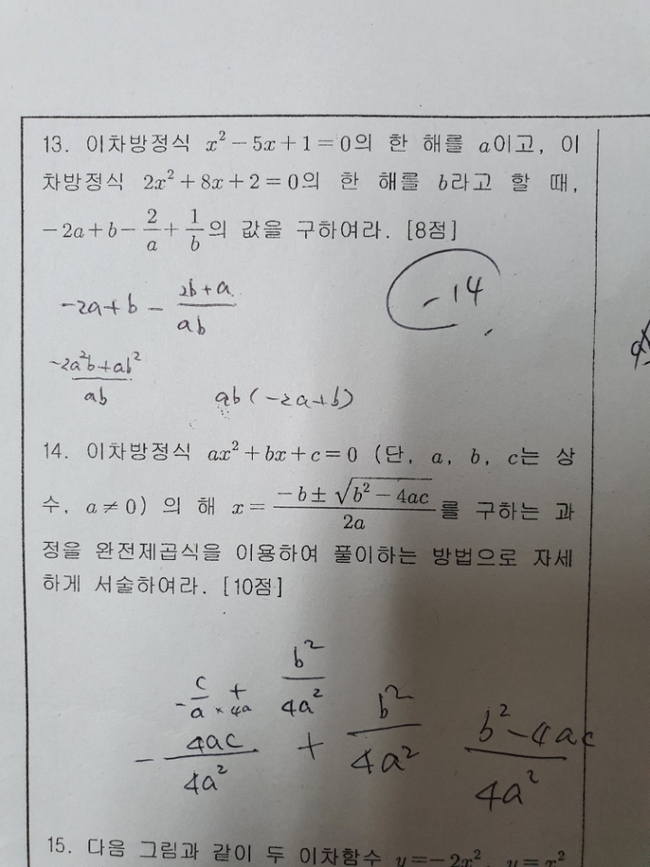 14번에 판별식이 0 이상이라는 조건이 없어도 정답으로 가능한가요?