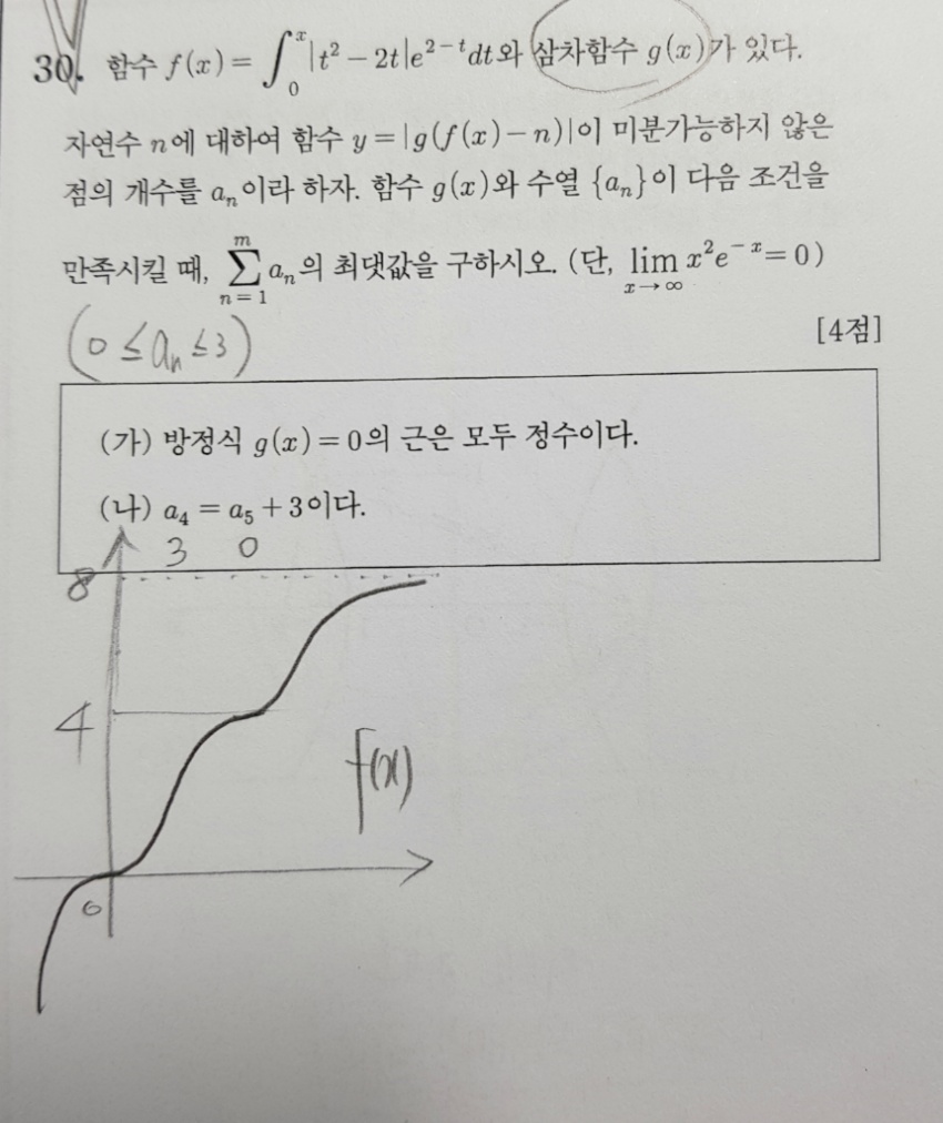 f(x)일단 그렸고, 뒷쪽에 a4=3, a5=0 일수밖에 없는것 찾았습니다.