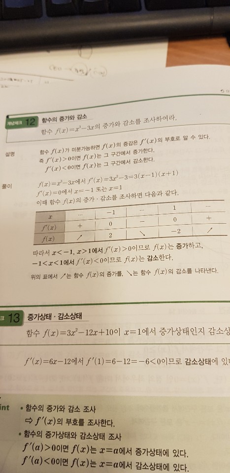 이를테면, 증가의 경우 f '(a) = f '(b) = 0 일 때, a<b이면 f(a)<f(b)를 만족하는 구간은 [a, b]일 테니까요...