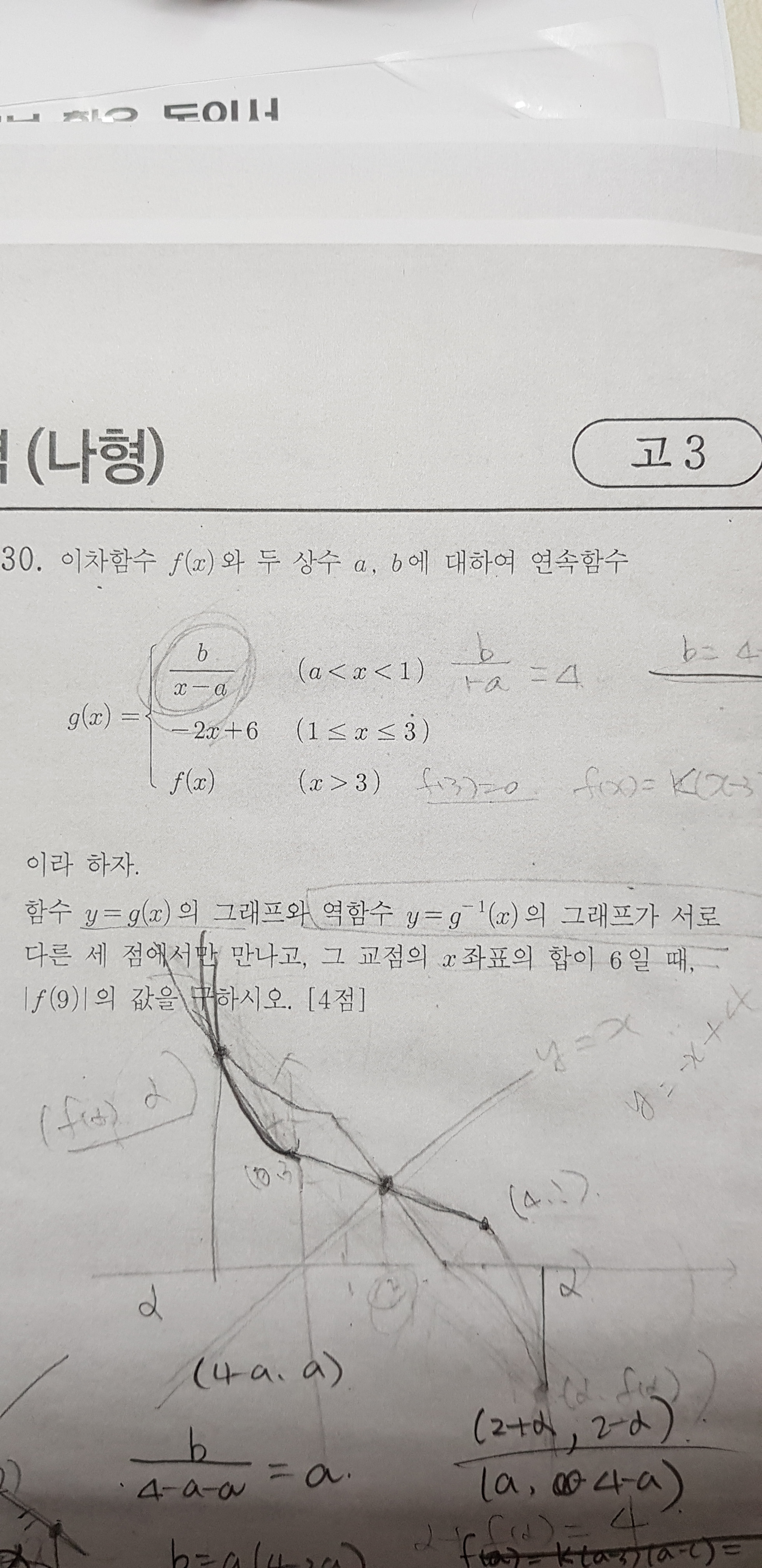 고3나형, 역함수와의 교점 관련문제 작성자이단비|작성시간19.11.05|조회수836 목록 댓글 5 글자크기 작게가 글자크기 크게가 잘 안 풀리네요. 한 수 부탁드립니다. 다음검색 현재 게시글 추가 기능 열기 북마크 공유하기 신고 센터로 신고 댓글 댓글 5 댓글쓰기 답글쓰기 댓글 리스트 작성자Suci | 작성시간 19.11.05 유리함수가 y=-x+2랑 접해야해요 답댓글 작성자이단비 작성자 본인 여부 작성자 | 작성시간 19.11.05 아! 그렇군요. 감사합니다~~^^ 답댓글 작성자이단비 작성자 본인 여부 작성자 | 작성시간 19.11.05 아! 그렇군요. 근데 혹시 y=-x+4 아닌가요? 작성자Ekqhd | 작성시간 19.11.05 해설 올릴께요 작성자대각국사 | 작성시간 19.11.06 이미지 확대 댓글 전체보기