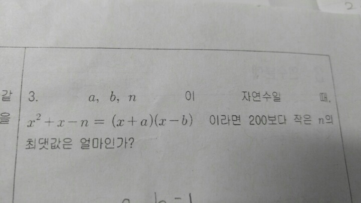 풀이과정 부탁드립니다~^^ 작성자꽃같이 바위같이|작성시간16.04.22|조회수407 목록 댓글 2 글자크기 작게가 글자크기 크게가 감사합니다 다음검색 현재 게시글 추가 기능 열기 북마크 공유하기 신고 센터로 신고 댓글 댓글 2 댓글쓰기 답글쓰기 댓글 리스트 작성자김탁 | 작성시간 16.04.22 우변 전개하여 좌변과 계수 비교하면 1=a-b. n=ab=a(a-1).최대 n=14×13=182 인 듯 하네요. 작성자꽃같이 바위같이 작성자 본인 여부 작성자 | 작성시간 16.04.22 네 ~~감사합니다 😅 댓글 전체보기