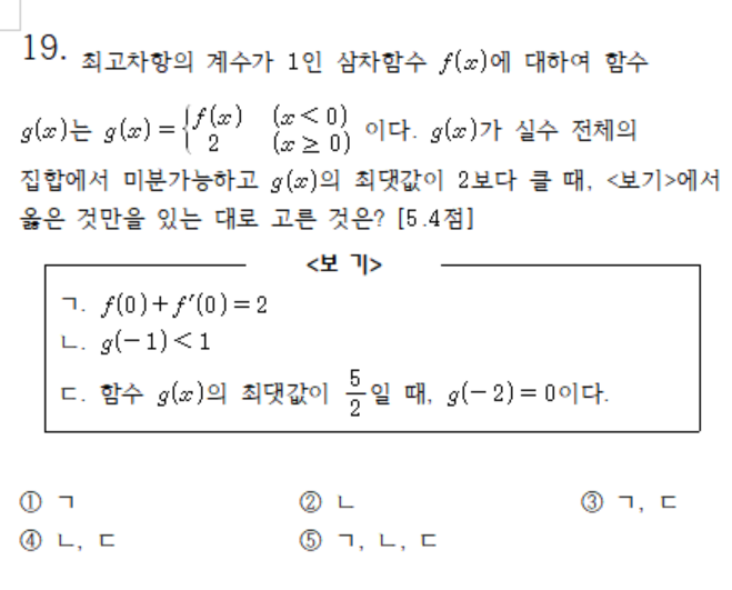 19번은 f(0)=2 이라고 두고 f(x) = ax^3+bx^3+cx+2