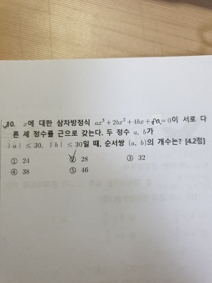 고1 기말 삼차방정식 작성자레드향기|작성시간21.06.04|조회수212 목록 댓글 4 글자크기 작게가 글자크기 크게가 1. 제목에 출처와 범위를 써주세요2. 출처:3. 범위:4. 나는 이런 방식으로 풀었어요: 다음검색 현재 게시글 추가 기능 열기 북마크 공유하기 신고 센터로 신고 댓글 댓글 4 댓글쓰기 답글쓰기 댓글 리스트 작성자하하붕붕 | 작성시간 21.06.04 근계수를 써봣는데 뭔가 안 맞는데요...세근의 곱이 -9면 -1,1,9 이거나 1,3,-3인데 다른 식에 대입해보면 안 나오는데 뭘 잘못 생각한걸까요... 답댓글 작성자레드향기 작성자 본인 여부 작성자 | 작성시간 21.06.04 이미지 확대 답댓글 작성자레드향기 작성자 본인 여부 작성자 | 작성시간 21.06.04 문제가 오타였어요. ㅠ 답댓글 작성자레드향기 작성자 본인 여부 작성자 | 작성시간 21.06.06 풀어보셨나요? 안풀려서요ㅠ 댓글 전체보기