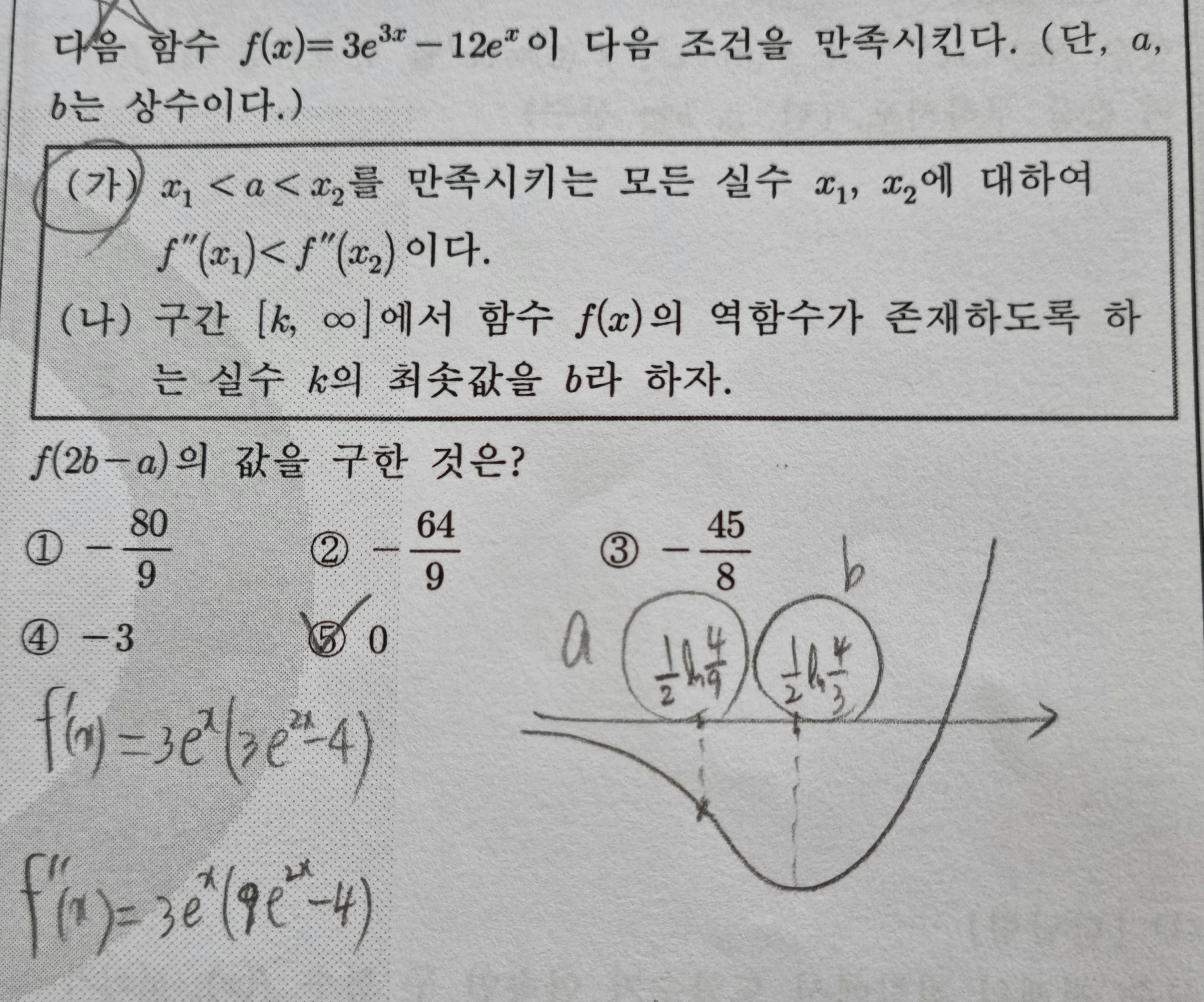 변곡점!! 작성자쿨럭|작성시간21.06.22|조회수272 목록 댓글 6 글자크기 작게가 글자크기 크게가 가에서 a가 왜 변곡점이란뜻이죠?다른문제보니까 보통 f"×f"<0 이런식으로 써있던데 그럼이해가되는데 저표현은 왜변곡점인지 설명좀여ㅠ 다음검색 현재 게시글 추가 기능 열기 북마크 공유하기 신고 센터로 신고 댓글 댓글 6 댓글쓰기 답글쓰기 댓글 리스트 작성자쿨럭 작성자 본인 여부 작성자 | 작성시간 21.06.22 혹시 a가 아닌지점에서 가를 만족하는점이 있을순없나요? 삭제된 댓글입니다. 답댓글 작성자대각국사 | 작성시간 21.06.22 f '' (a)>=0 인 구간에서 (가) 조건을 다 만족하는 군요. 답댓글 작성자쿨럭 작성자 본인 여부 작성자 | 작성시간 21.06.23 대각국사 왜죠? 이계도함수의 크기를비교한다는게 무슨의미죠? 답댓글 작성자yesrainy | 작성시간 21.06.23 쿨럭 f"(x)그래프를 그려보세요.. 댓글 전체보기