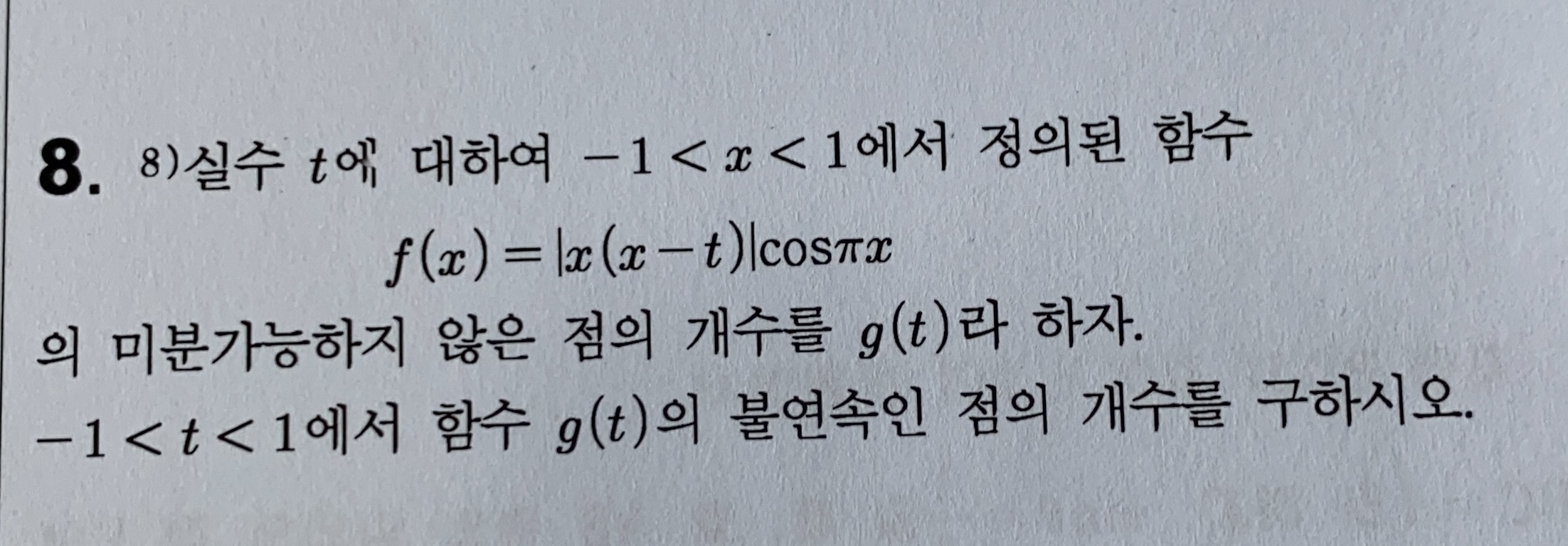 함수 f(x)가 미분 불가능이 될 수 있는 점은 x=t, x=0 두 곳인데