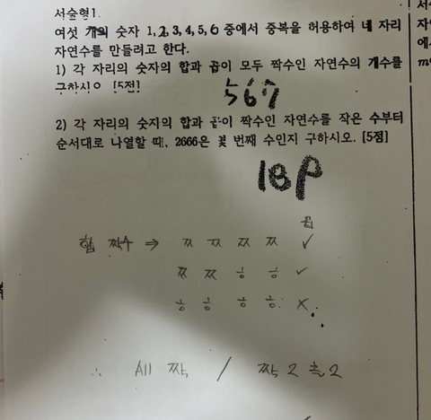 짝수 두개 홀수 두개인 경우가 경우의수가 너무 많아서 식으로 표현이 안되네요..
