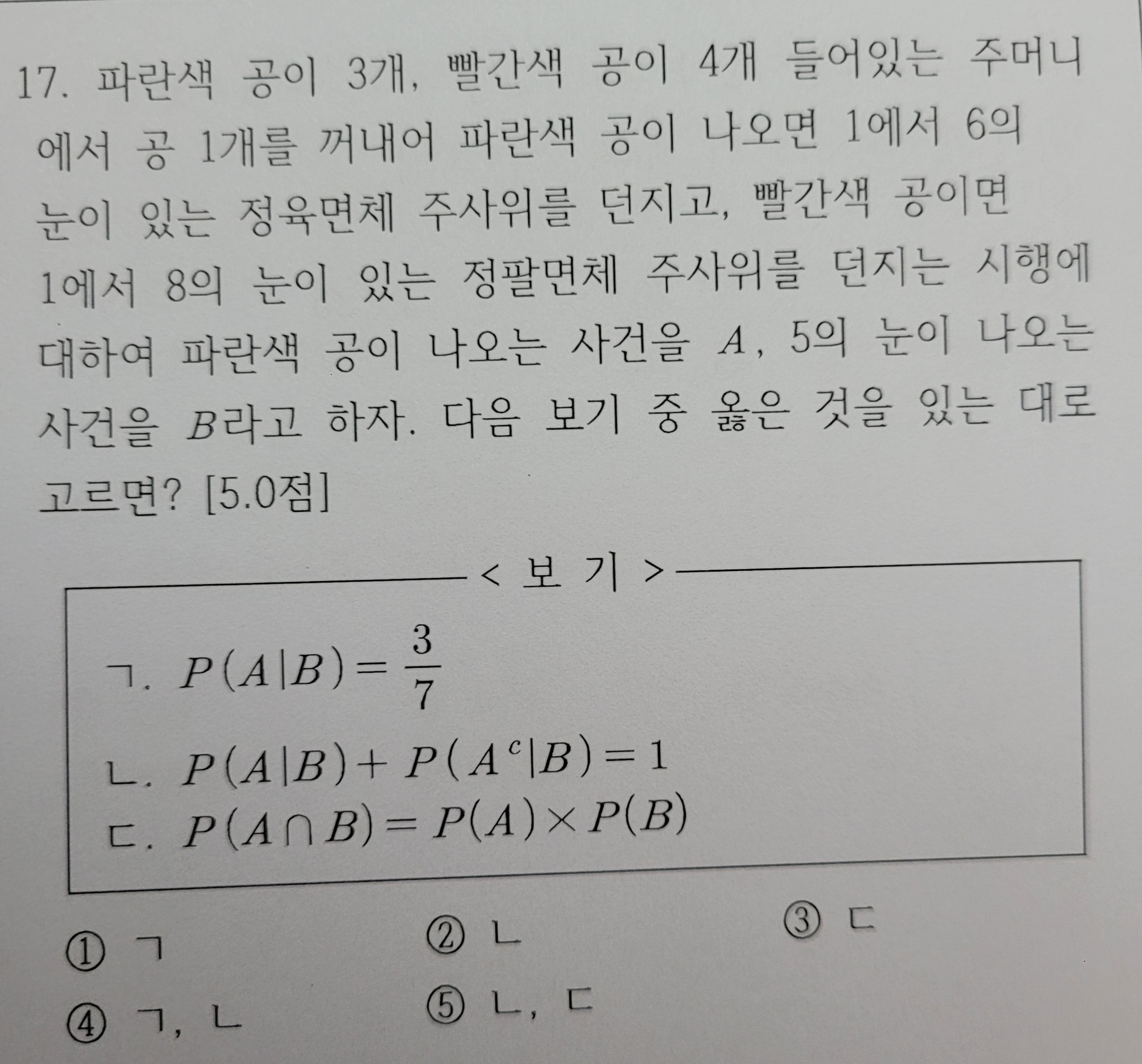 [확률과 통계]조건부확률문제 작성자세상|작성시간24.04.07|조회수190 목록 댓글 2 글자크기 작게가 글자크기 크게가 답2 풀이부탁드립니다 다음검색 현재 게시글 추가 기능 열기 북마크 공유하기 신고 센터로 신고 댓글 댓글 2 댓글쓰기 답글쓰기 댓글 리스트 작성자홍재 | 작성시간 24.04.07 이미지 확대 답댓글 작성자세상 작성자 본인 여부 작성자 | 작성시간 24.04.07 감사합니다 댓글 전체보기