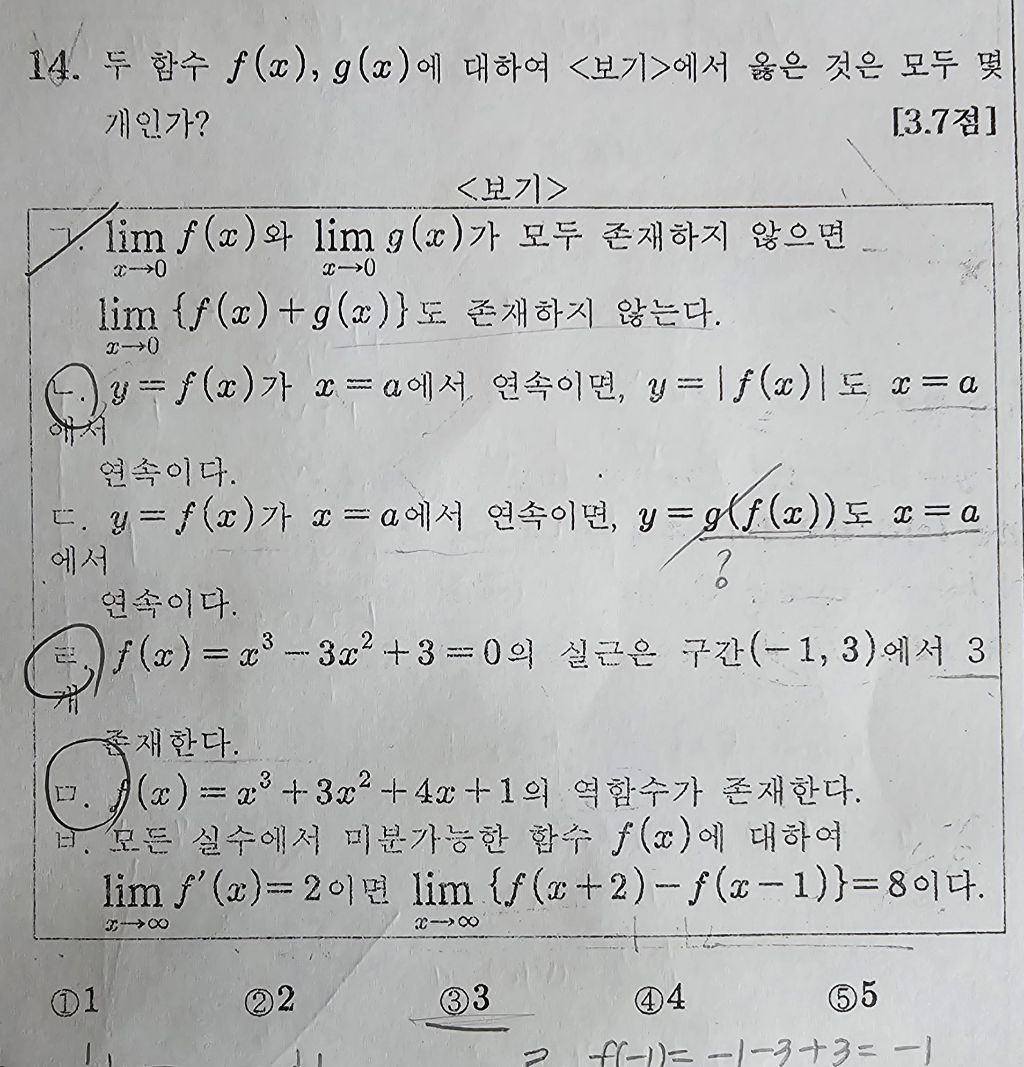 [미적분]학교기출 극한,미분 작성자신의축복이있길|작성시간24.04.18|조회수110 목록 댓글 3 글자크기 작게가 글자크기 크게가 답이 3번인데 ㄴ,ㄹ,ㅁ 가 맞다고 생각하는데ㅂ에 대해 도움요청합니다.답이 4번인데 도움요청합니다 다음검색 현재 게시글 추가 기능 열기 북마크 공유하기 신고 센터로 신고 댓글 댓글 3 댓글쓰기 답글쓰기 댓글 리스트 작성자홍재 | 작성시간 24.04.18 이미지 확대 답댓글 작성자신의축복이있길 작성자 본인 여부 작성자 | 작성시간 24.04.18 감사합니다 작성자홍재 | 작성시간 24.04.18 ㅂ은 함수의 x가무한대일때 기울기가 2로수렴하므로 x가 무한대일때 3늘어나는동안 함숫값차이는3의2배인 6이죠 댓글 전체보기