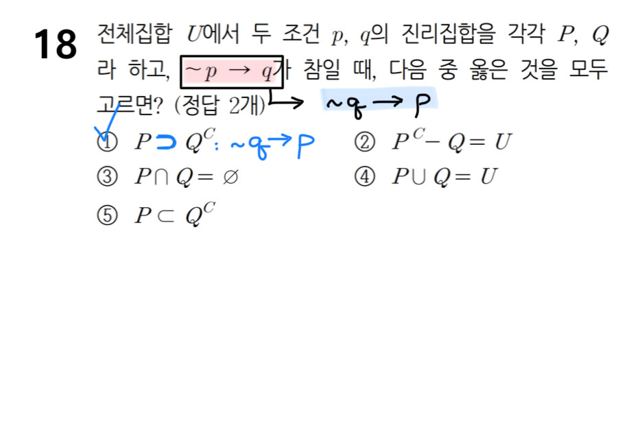 고등수학(하) 명제..질문있어요! 작성자뿌꾸|작성시간24.09.20|조회수156 목록 댓글 3 글자크기 작게가 글자크기 크게가 안녕하세요 명제 문제풀이 중 막혔어요,벤다이어그램 같이 설명 해주실수있나요? 다음검색 현재 게시글 추가 기능 열기 북마크 공유하기 신고 센터로 신고 댓글 댓글 3 댓글쓰기 답글쓰기 댓글 리스트 작성자흰구름 | 작성시간 24.09.20 정답 1, 4번 이네요. 답댓글 작성자뿌꾸 작성자 본인 여부 작성자 | 작성시간 24.09.20 네 맞아요, 설명부탁드려도 될까요? 작성자흰구름 | 작성시간 24.09.20 이미지 확대 댓글 전체보기