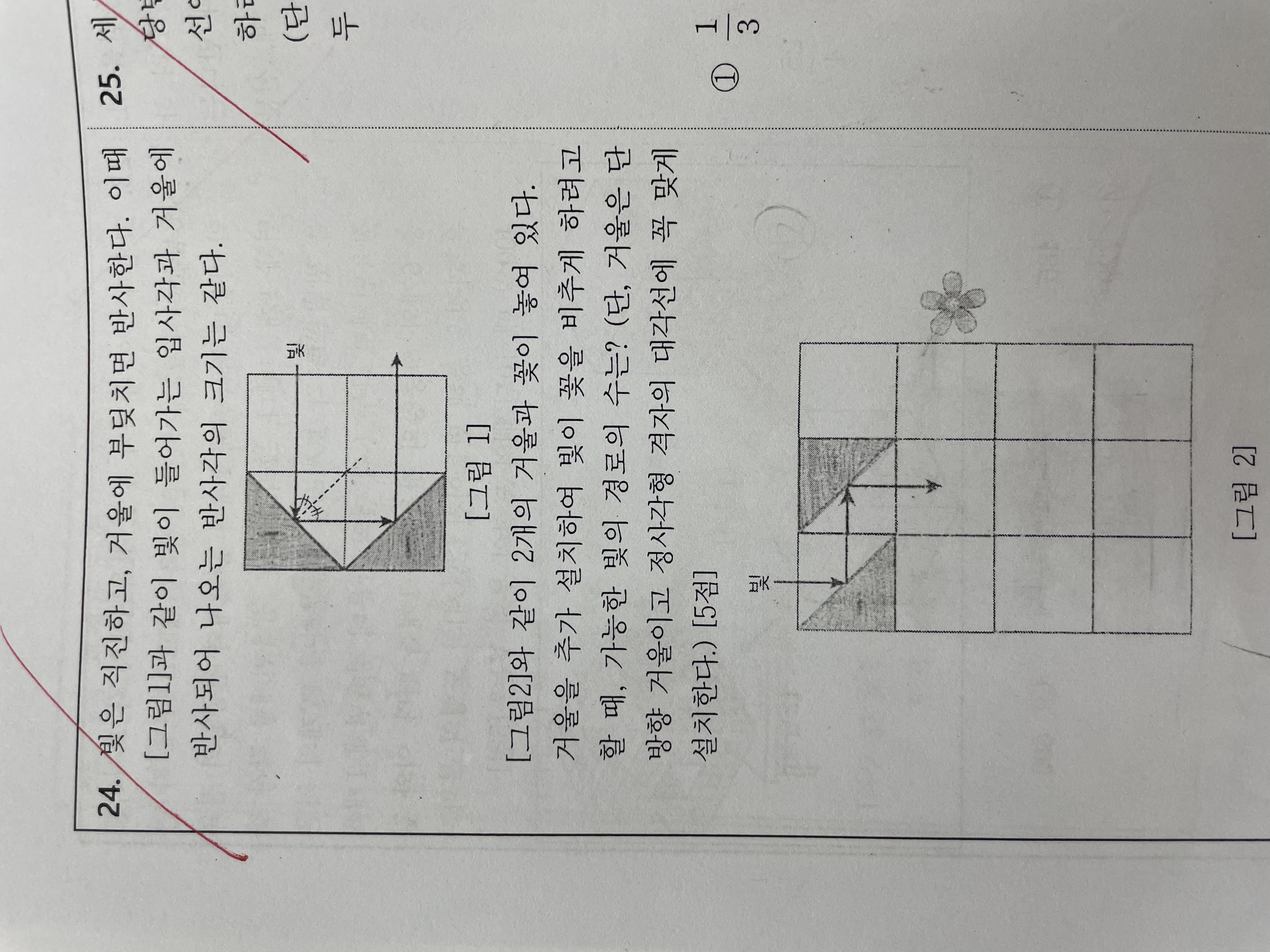 [중학교 확통]중2-2 기말 기출입니다 작성자지쿠니|작성시간25.12.20|조회수150 목록 댓글 5 글자크기 작게가 글자크기 크게가 풀이 좀 부탁드려요~ 다음검색 현재 게시글 추가 기능 열기 북마크 공유하기 신고 센터로 신고 댓글 댓글 5 댓글쓰기 답글쓰기 댓글 리스트 작성자박승렬 | 작성시간 25.12.22 이미지 확대 작성자박승렬 | 작성시간 25.12.22 이미지 확대 작성자박승렬 | 작성시간 25.12.22 이미지 확대 답댓글 작성자지쿠니 작성자 본인 여부 작성자 | 작성시간 25.12.22 너무 감사합니다~!! 작성자오대감 | 작성시간 25.12.23 저는 13개 나오네요.아래의 그림처럼 거울이 없는 격자는 가로,세로 모두 진행할 수 있다는 것을 생각해야 합니다. 이미지 확대 댓글 전체보기