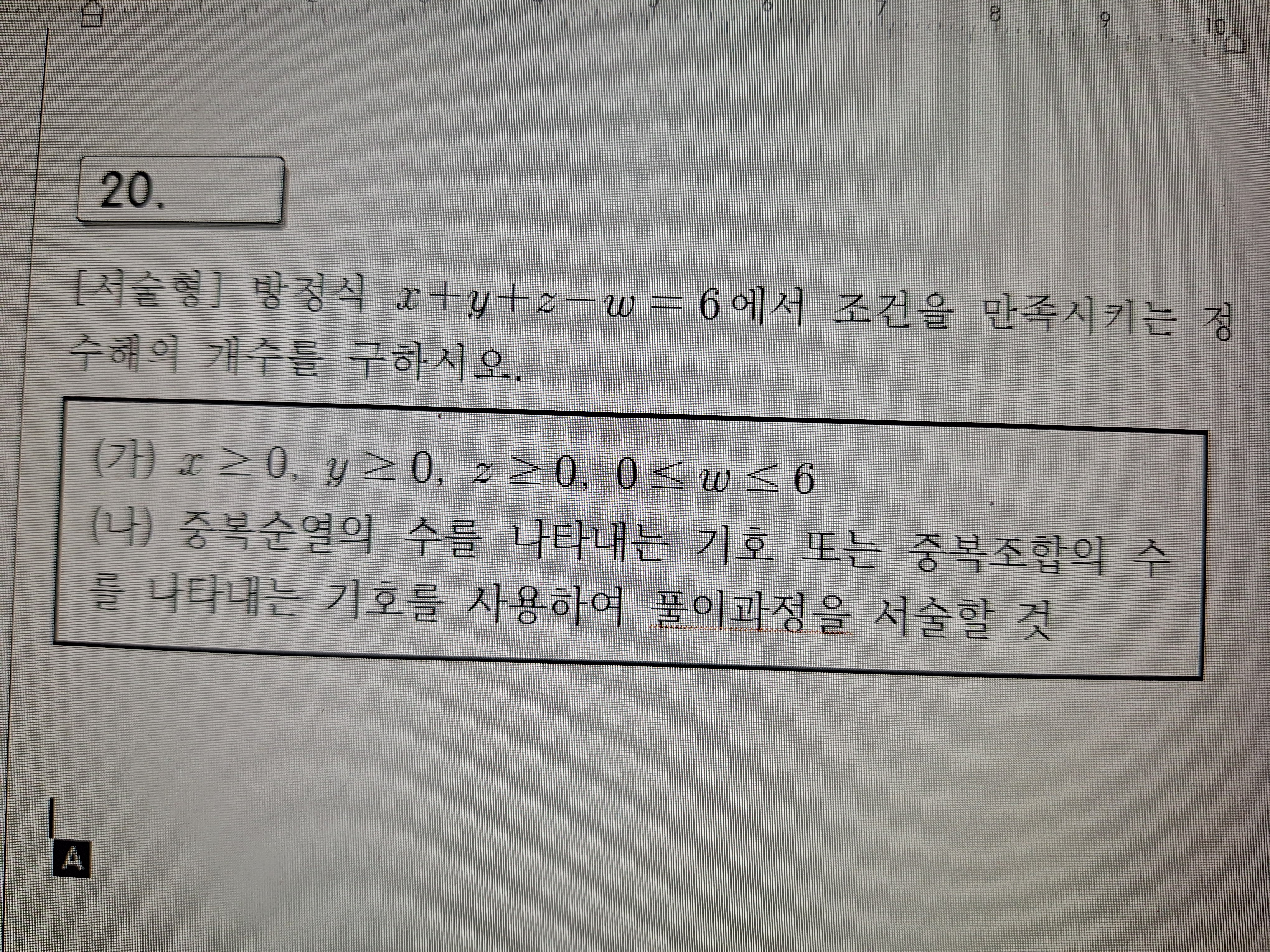 [확률과 통계]중복조합(부정방정식의해) 작성자스폰지송|작성시간26.03.15|조회수56 목록 댓글 2 글자크기 작게가 글자크기 크게가 저는 아무리해도 답이 399로 나오는데 77이라고 해서 올립니다 다음검색 현재 게시글 추가 기능 열기 북마크 공유하기 신고 센터로 신고 댓글 댓글 2 댓글쓰기 답글쓰기 댓글 리스트 작성자tangle | 작성시간 26.03.16 399가 맞습니다. 작성자스폰지송 작성자 본인 여부 작성자 | 작성시간 26.03.16 앗 넘 감사 댓글 전체보기