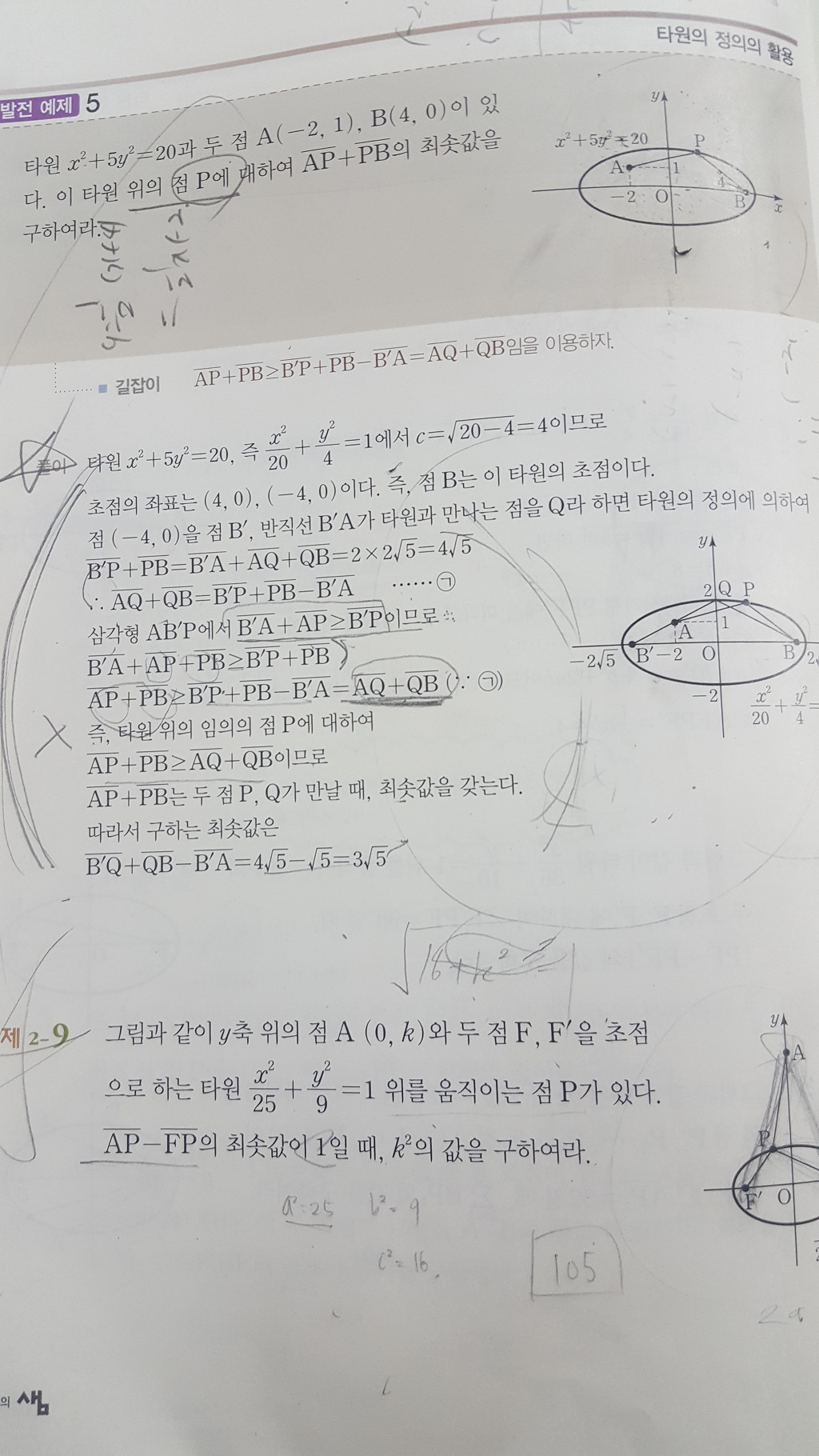 참고로... 삼각형 성립조건만으로만 본다면, 점P가 타원 위에 있지 않고 더 아래로 (= 타원 내부로) 들어가야 루트37이 나올겁니다. -