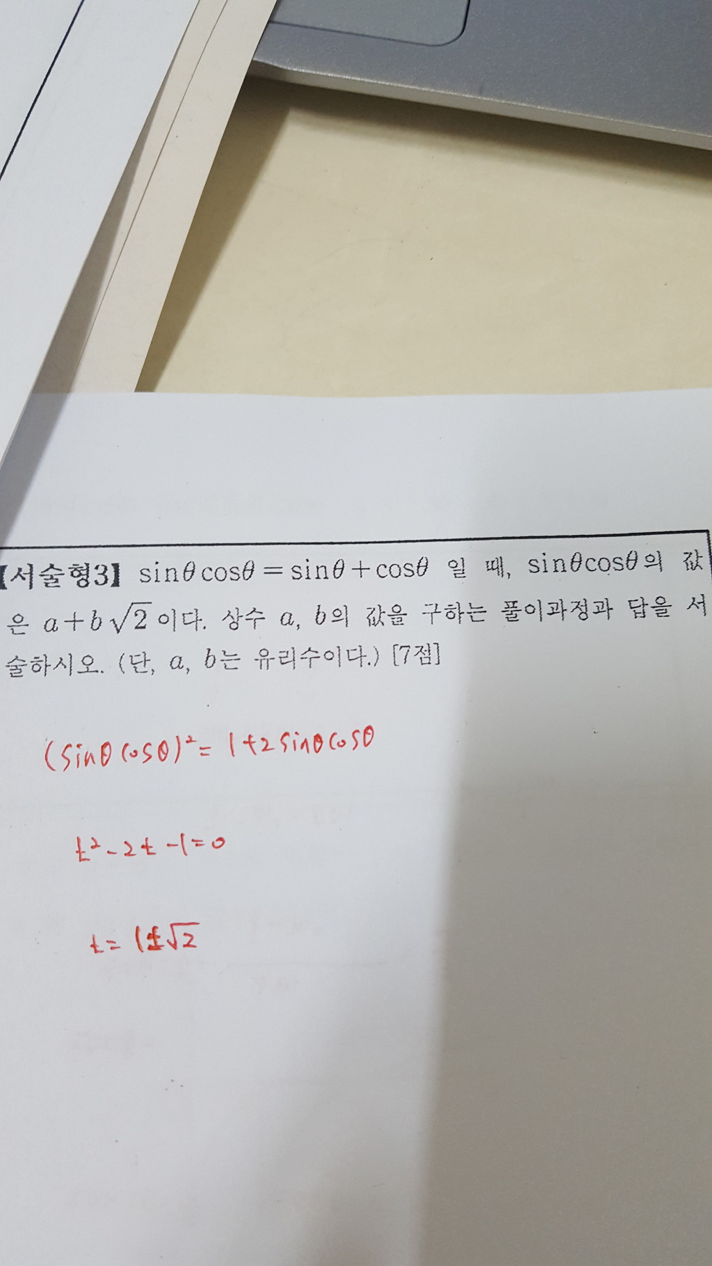 [고2]삼각함수 간단한 질문이요 작성자빵식이|작성시간17.09.25|조회수53 목록 댓글 2 글자크기 작게가 글자크기 크게가 이렇게 풀면 부호는 어떻게 되나요?도움 부탁드려요 다음검색 현재 게시글 추가 기능 열기 북마크 공유하기 신고 센터로 신고 댓글 댓글 2 댓글쓰기 답글쓰기 댓글 리스트 작성자카이스트준 | 작성시간 17.09.25 sin세타cos세타 = 1/2sin2세타 이므로 최댓값이 1/2입니다 따라서 1-루트2 작성자빵식이 작성자 본인 여부 작성자 | 작성시간 17.09.25 아 그렇군요.. 답변감사드려요 댓글 전체보기