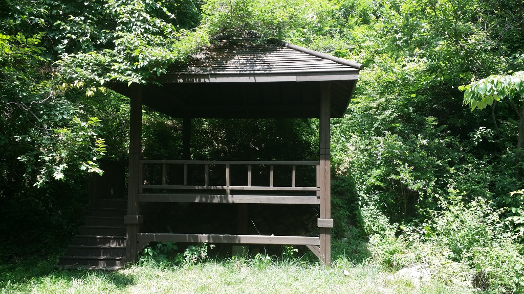 13:40 쉼터-옆에는 계곡물이 흐르고 있다.