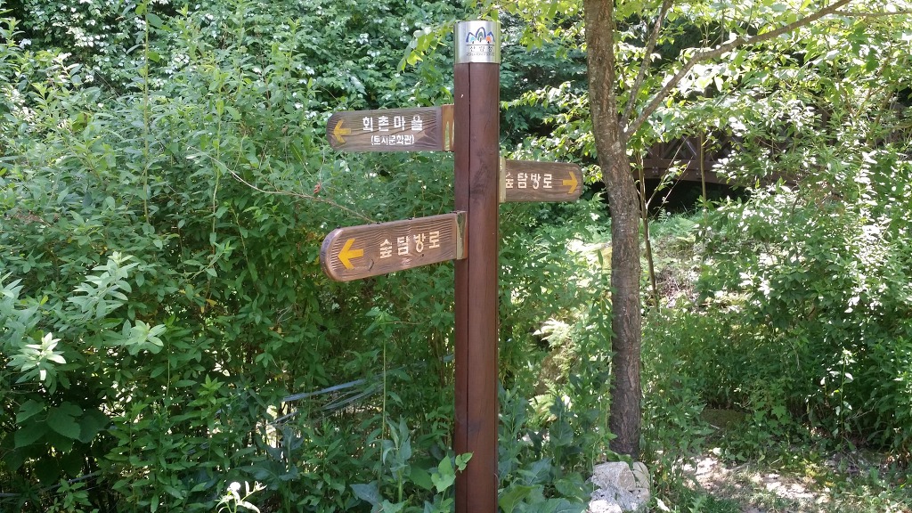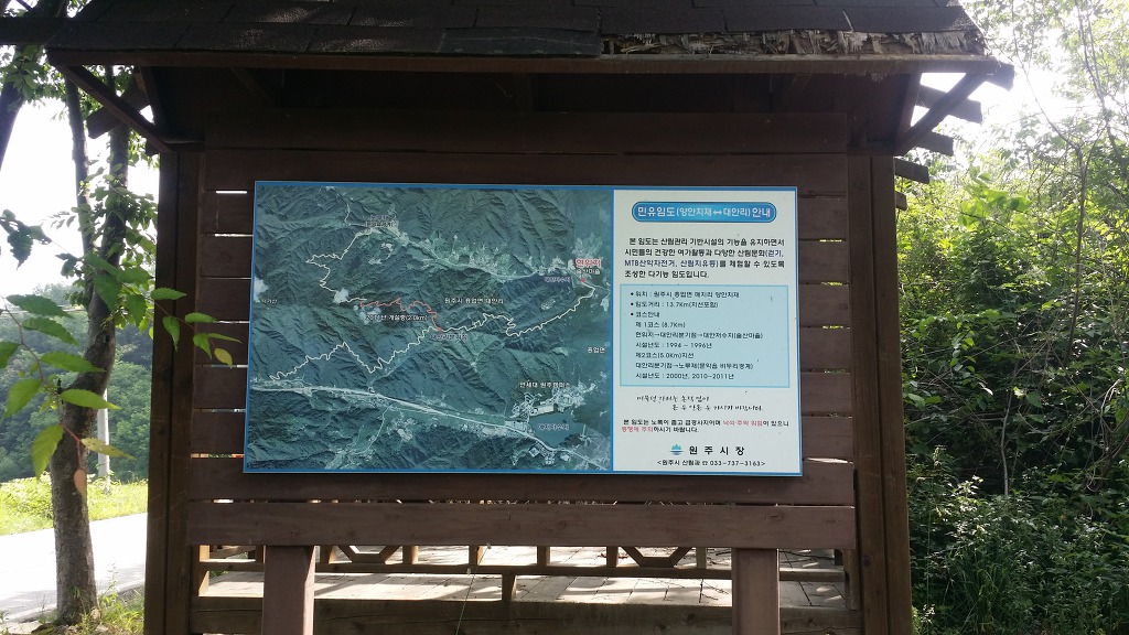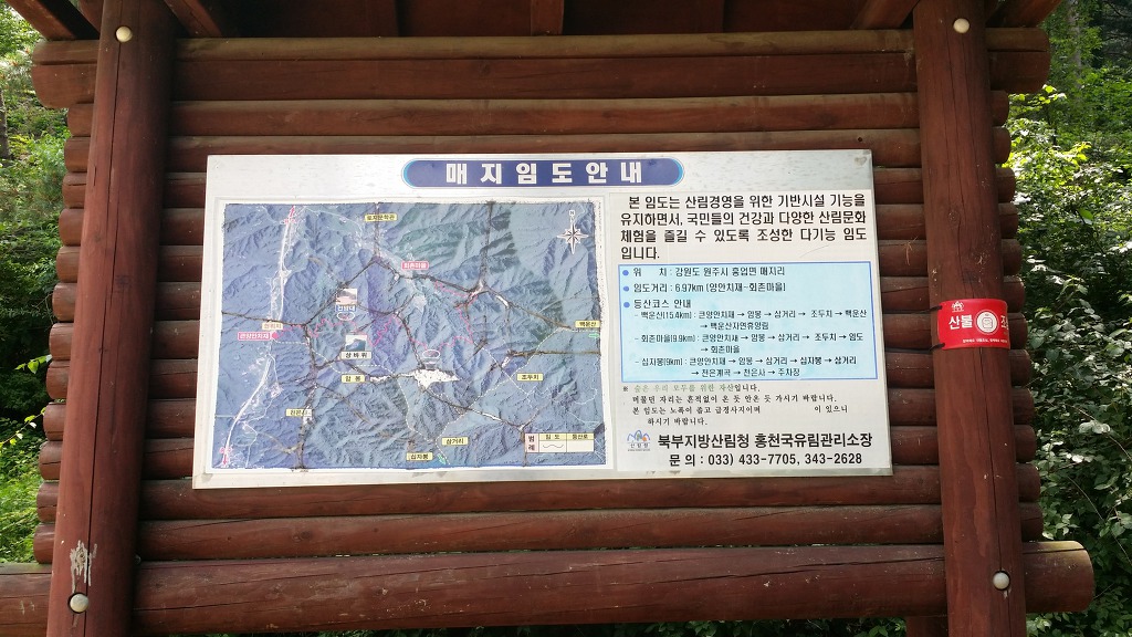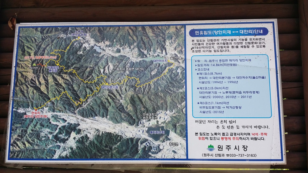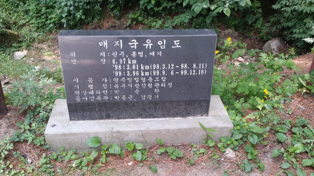 원주굽이길 제3코스(회촌 달맞이 길) 안내판. 매지임도 안내판. 매지국유임도 시설비.