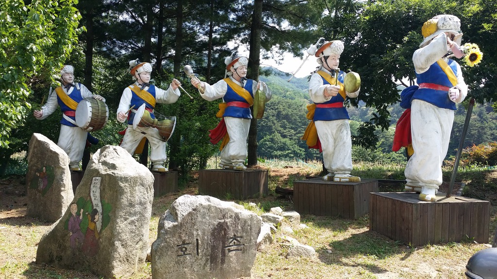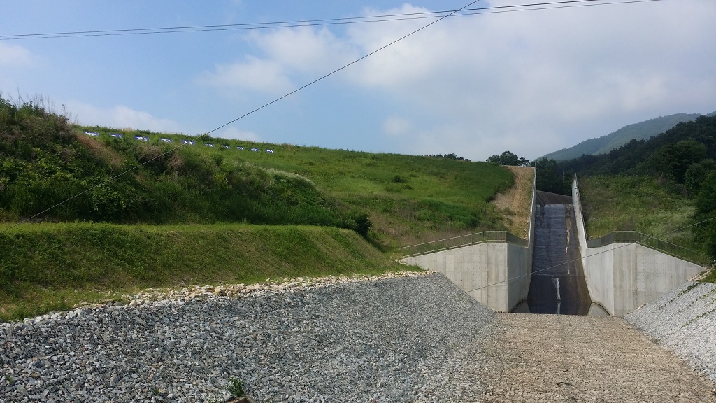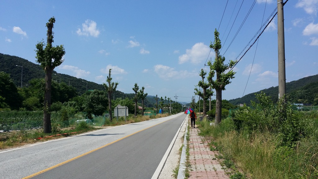 08:41 술산 정류소 출발-대안저수지를 바라보며 갈거리 사랑촌 200m ←표지 따라 원주굽이길 2코스를 이어간다.