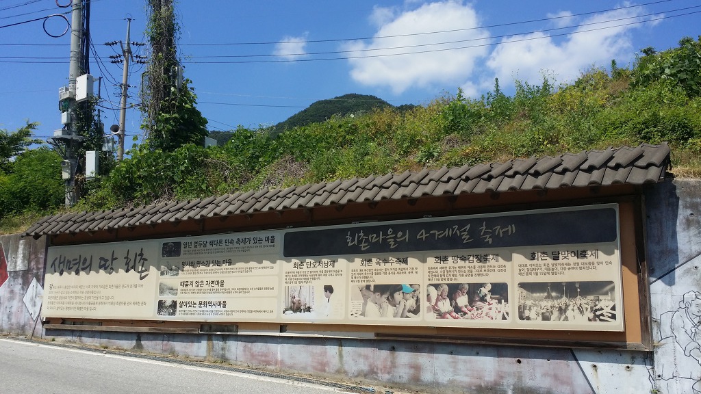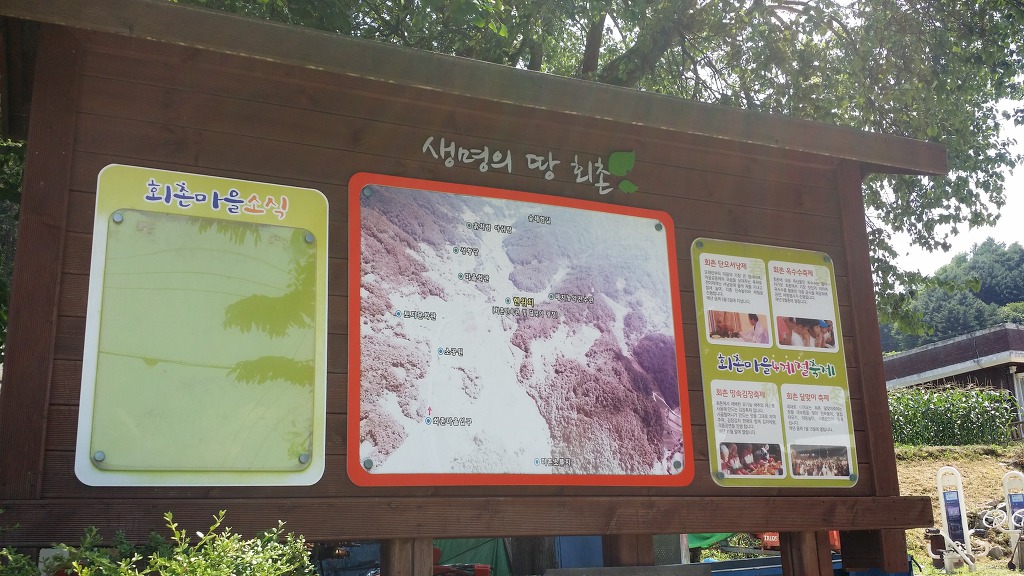 14:11~14:24 회촌경로당 앞. 굽이길 스탬프 찍는 곳-고목나무 쉼터에서 휴식.