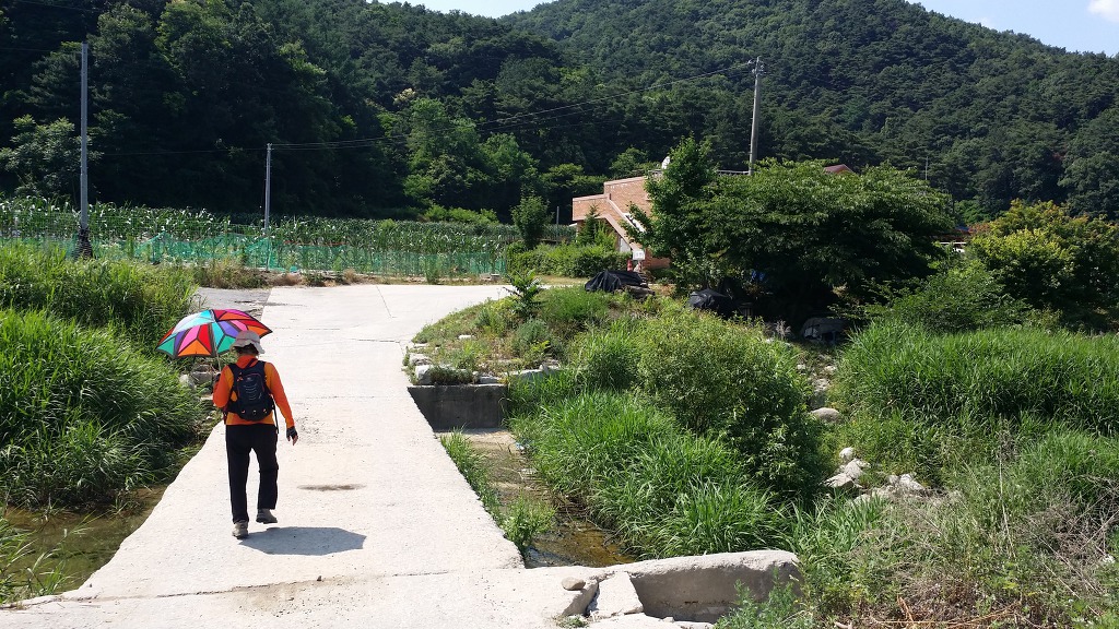 14:47 매지교차로-왼쪽으로 19번국도 아래를 통과해서 개울을 건너 시멘트길을 따라간다.