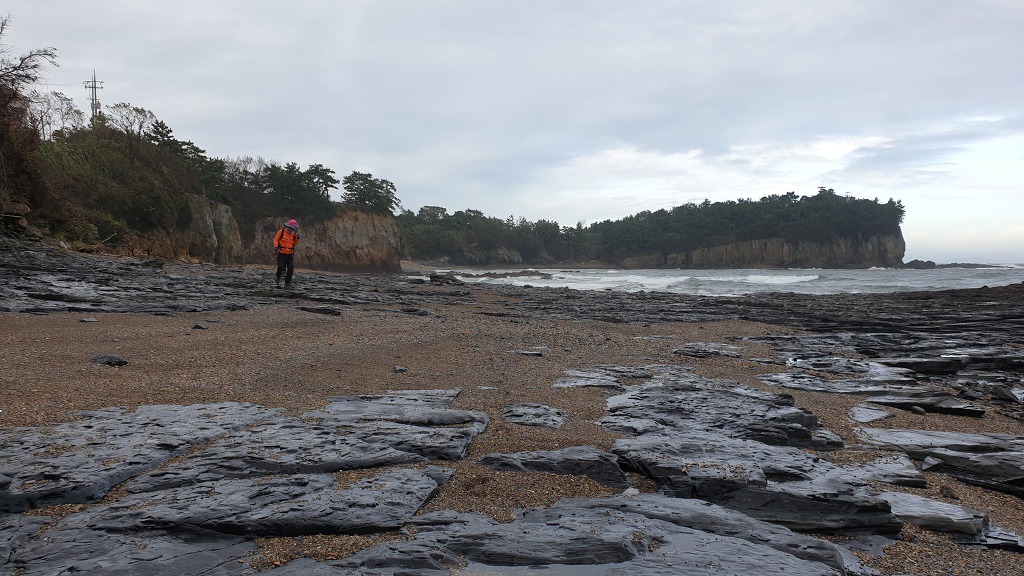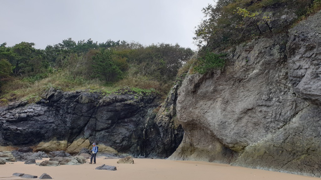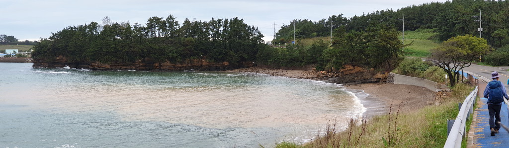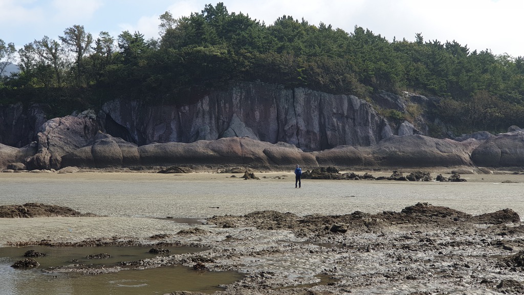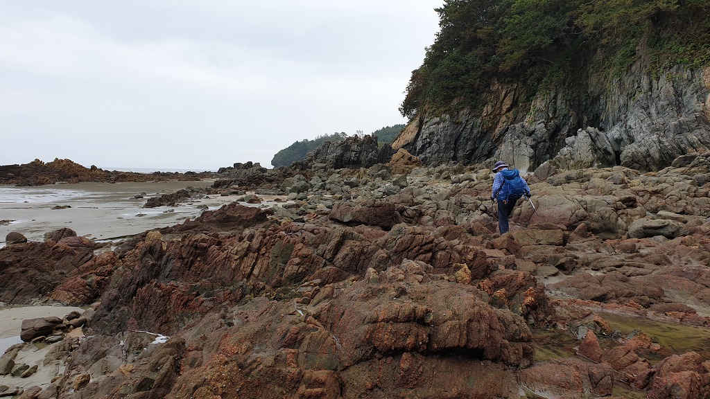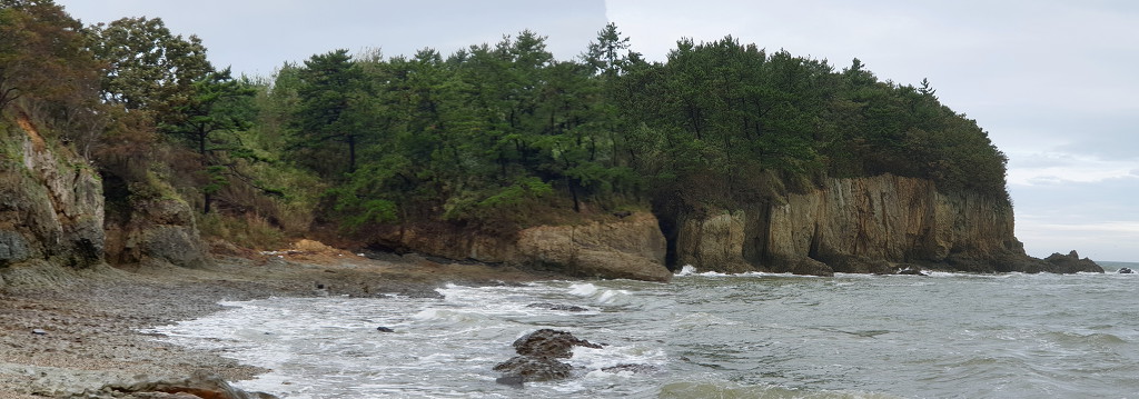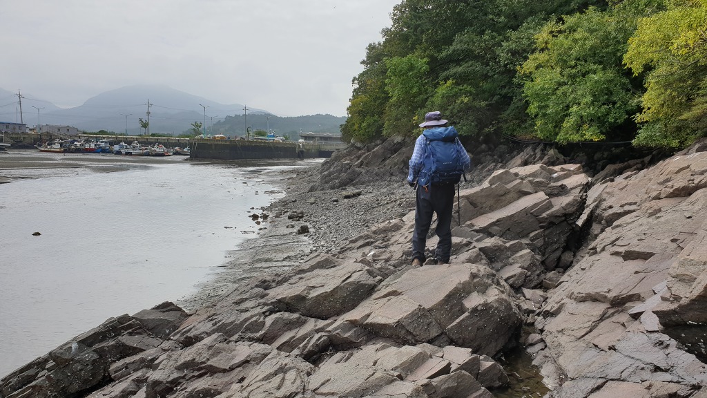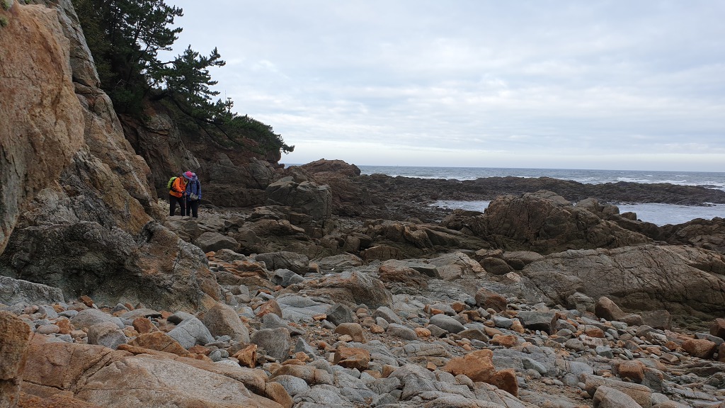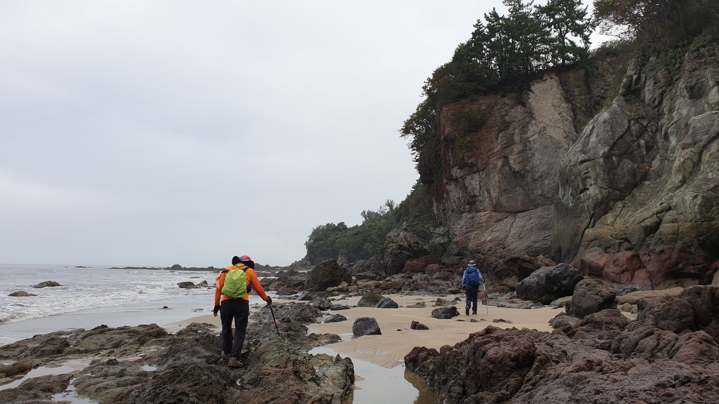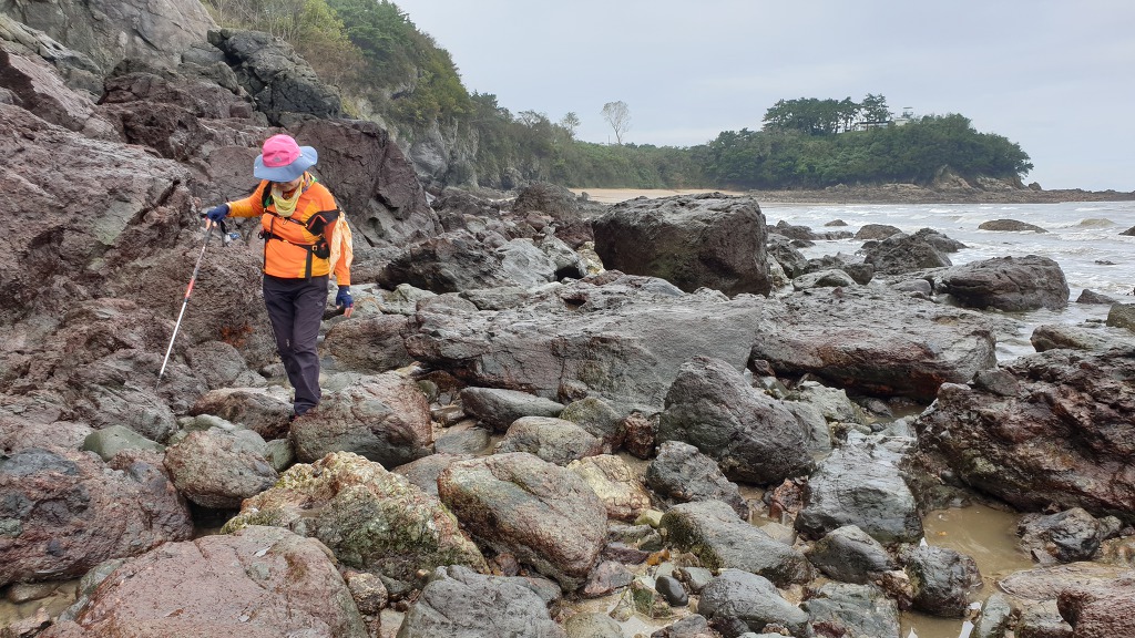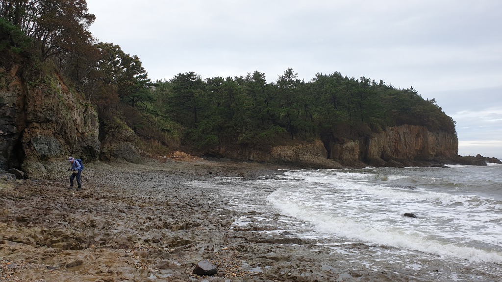07:47 해안으로 내려섰다. 돌이 미끄러워 적벽강 쪽으로 가다가 되돌아 나온다.