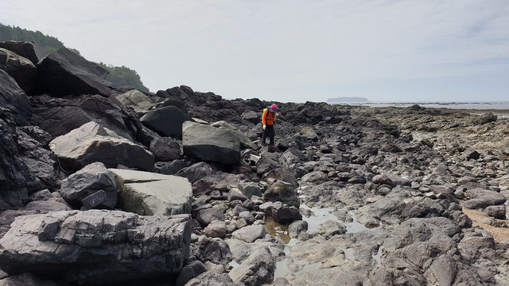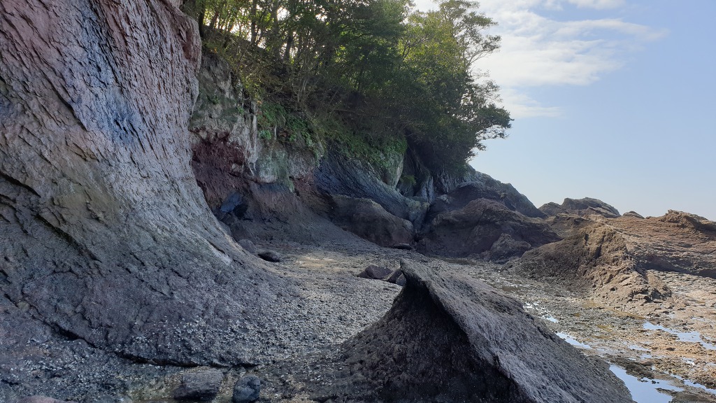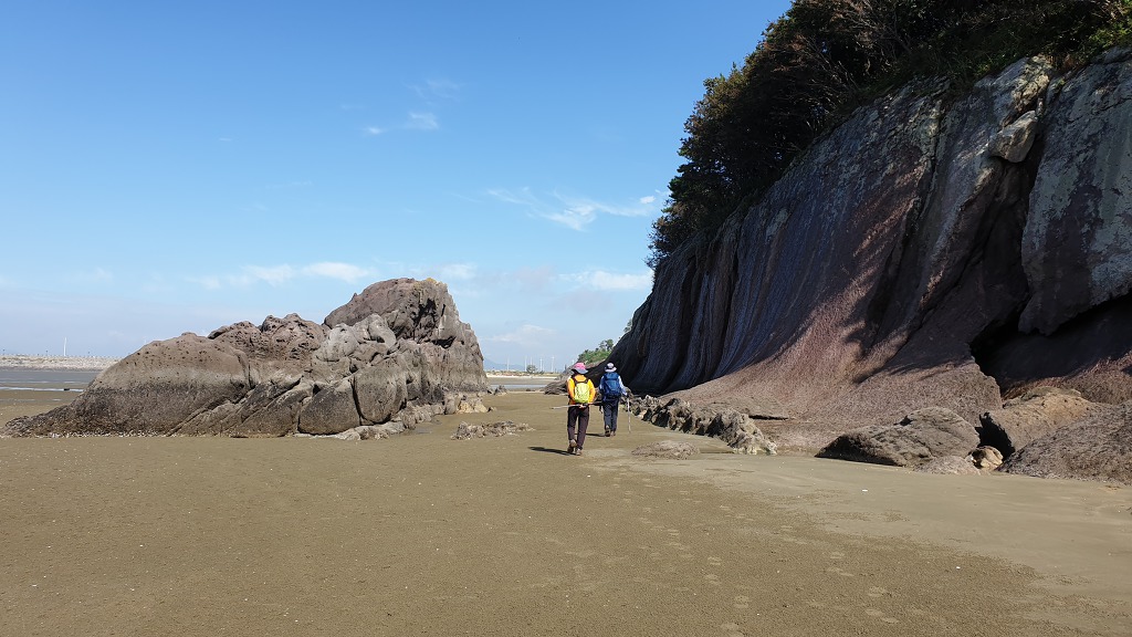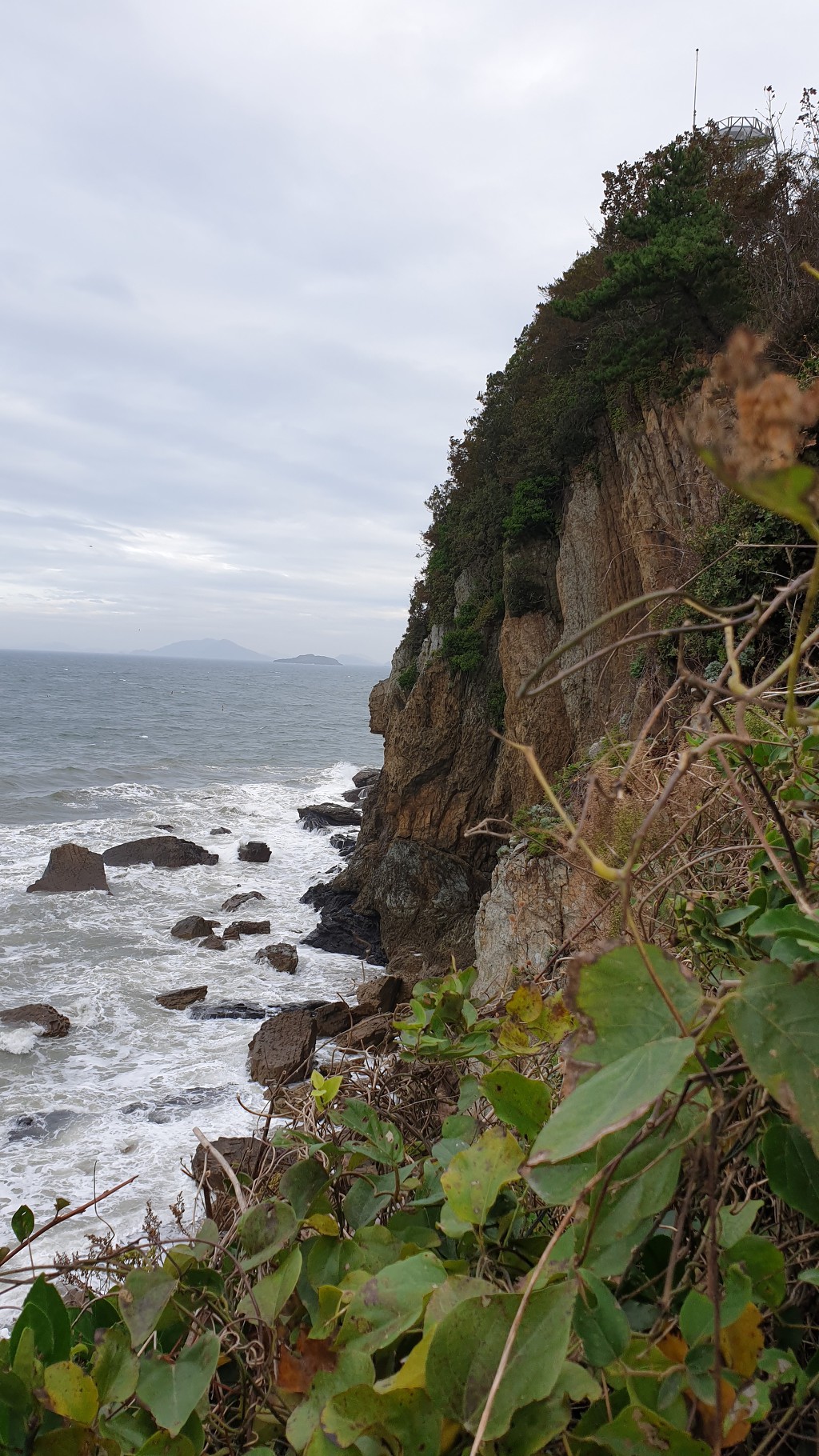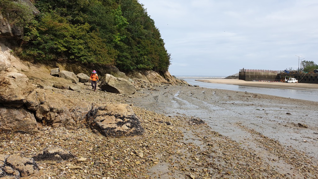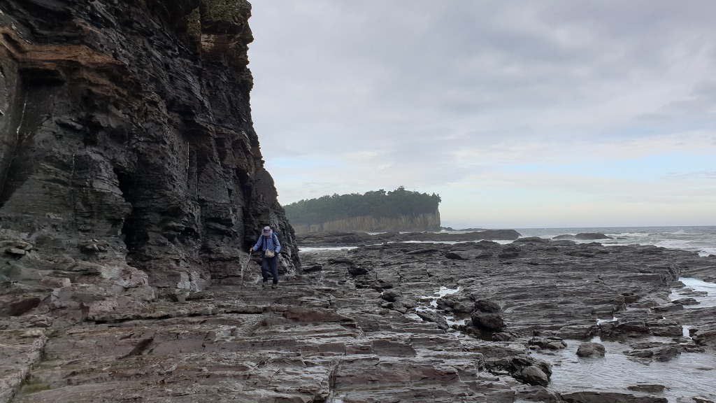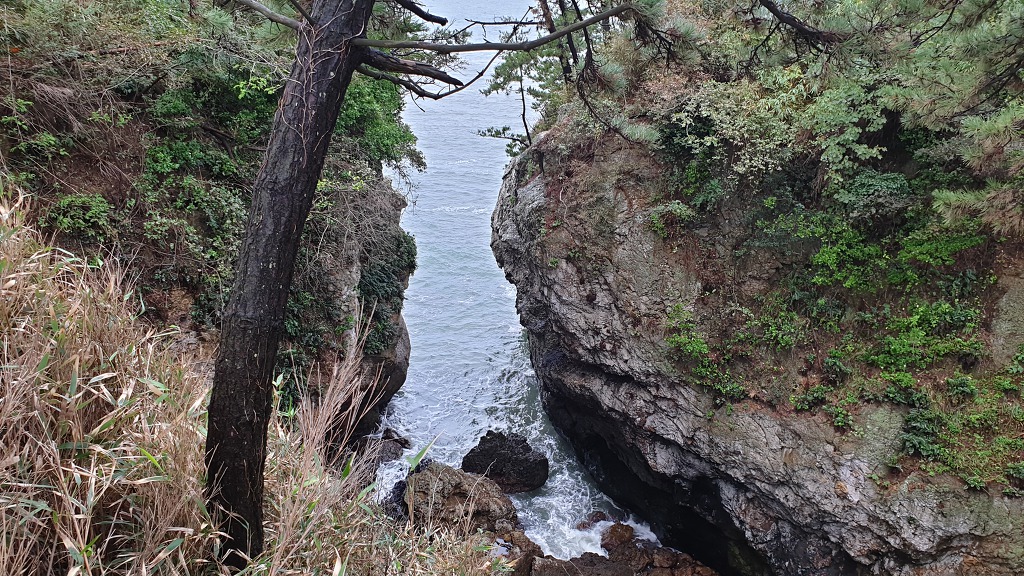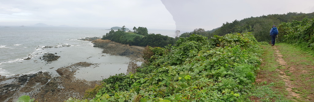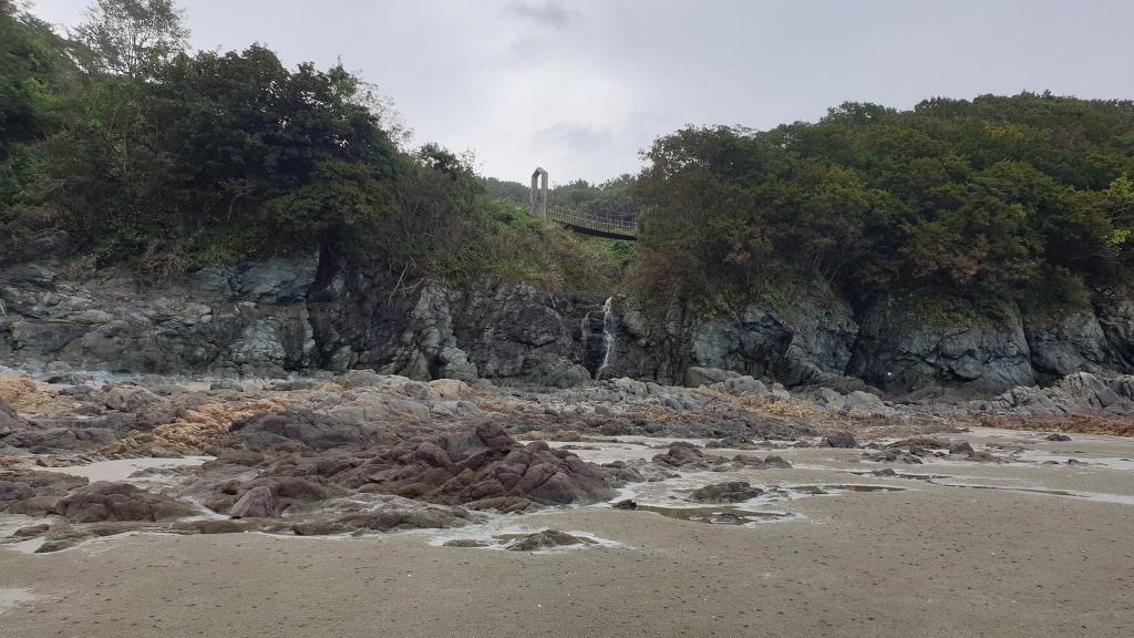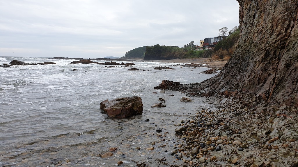 07:47 해안으로 내려섰다. 돌이 미끄러워 적벽강 쪽으로 가다가 되돌아 나온다.
