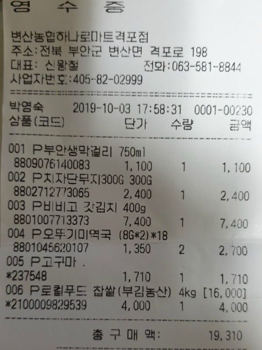 하나로마트 (식재료 \19,310)
