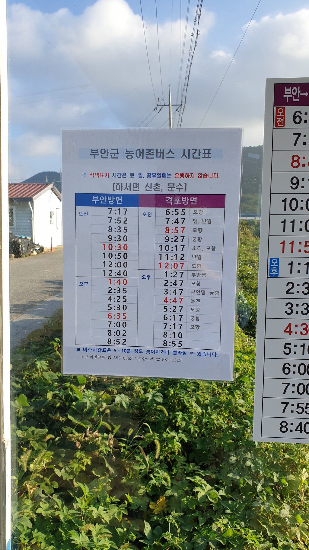 부안은 정류소마다 시간표가 잘 돼있다.