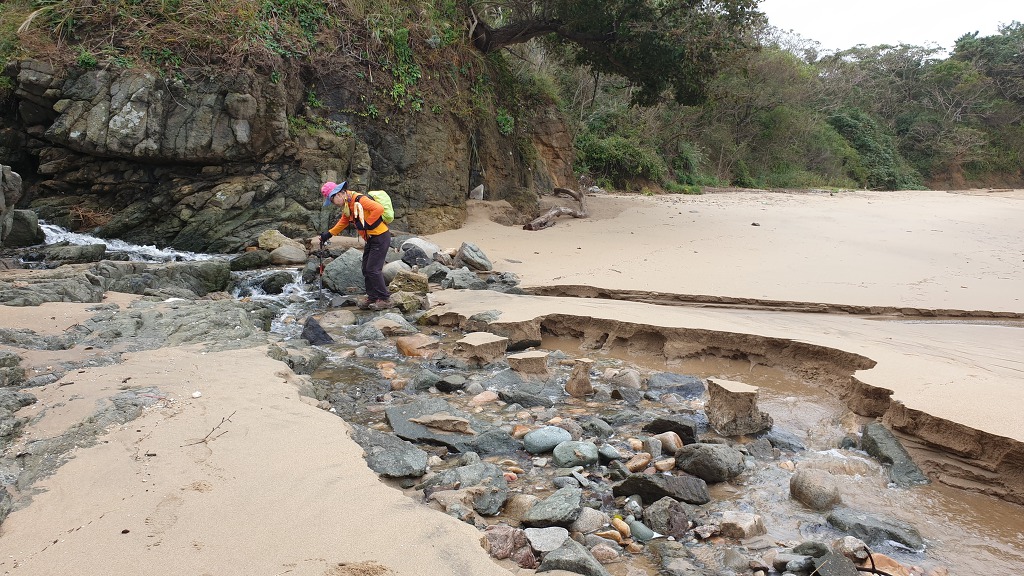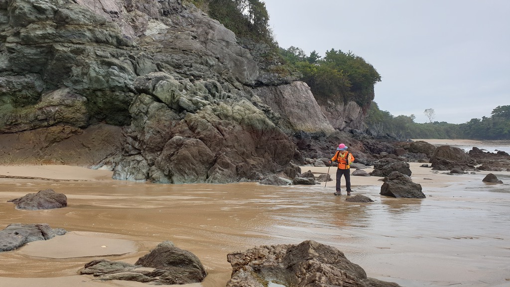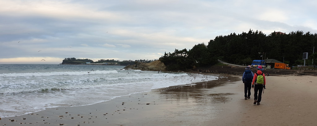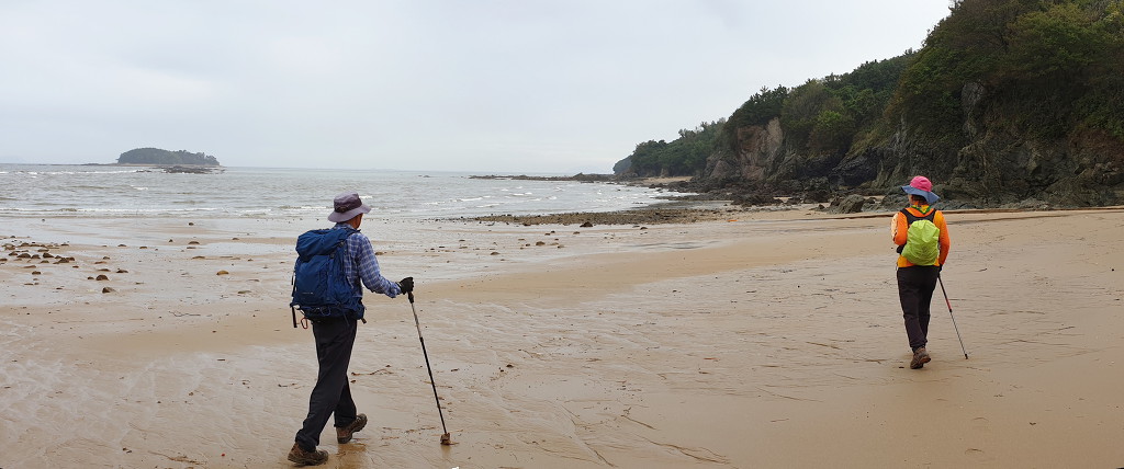 08:13 바위지대 지나 모래사장.