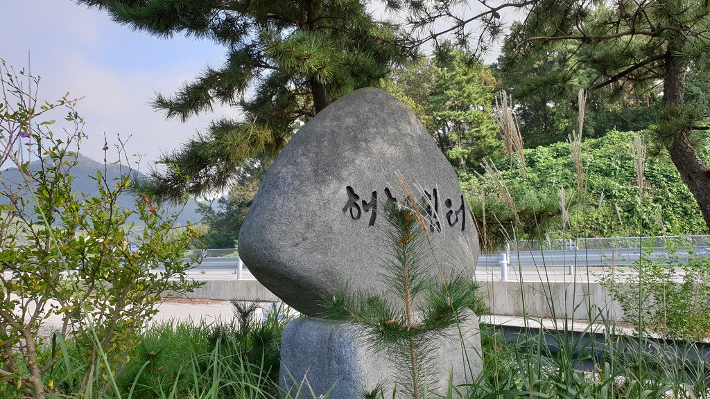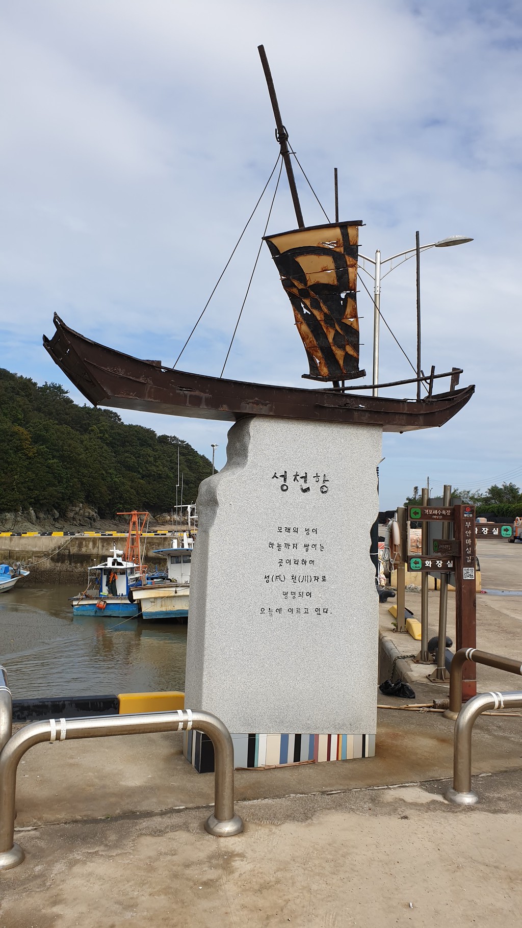 10:40 성천마을 쉼터(정자). 성천항 표지석.