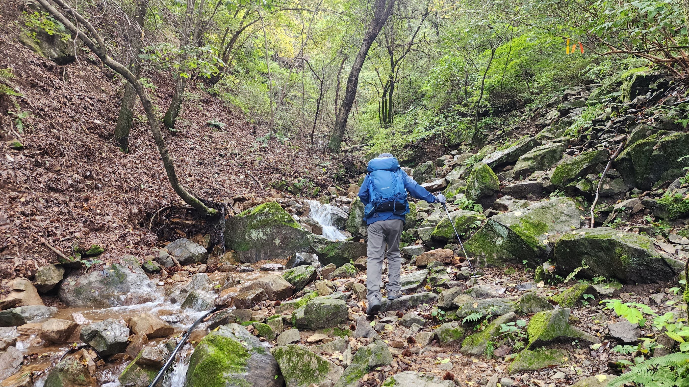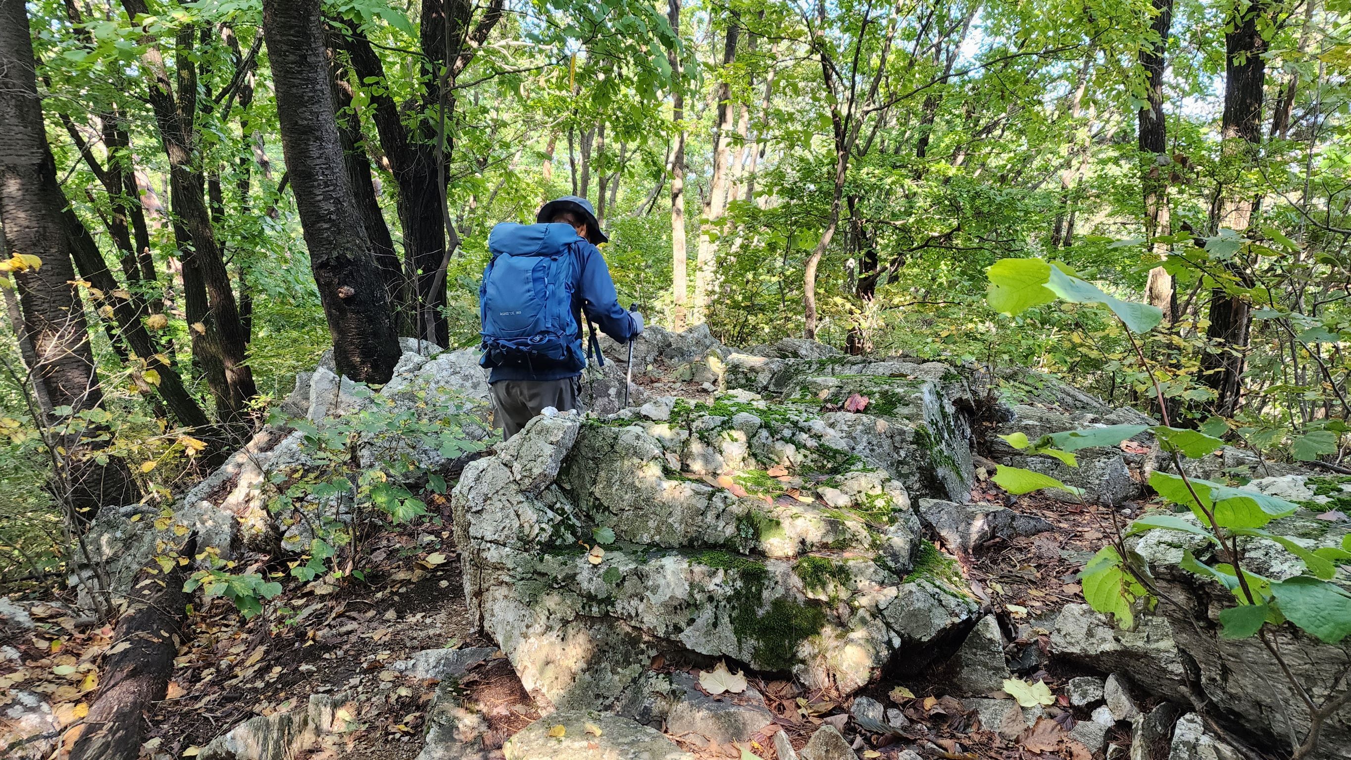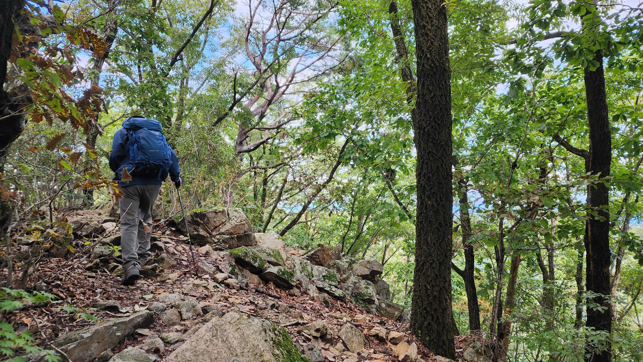 호명산 오름길과 호명호수까지의 돌밭 능선길에서 시간을 많이 보내