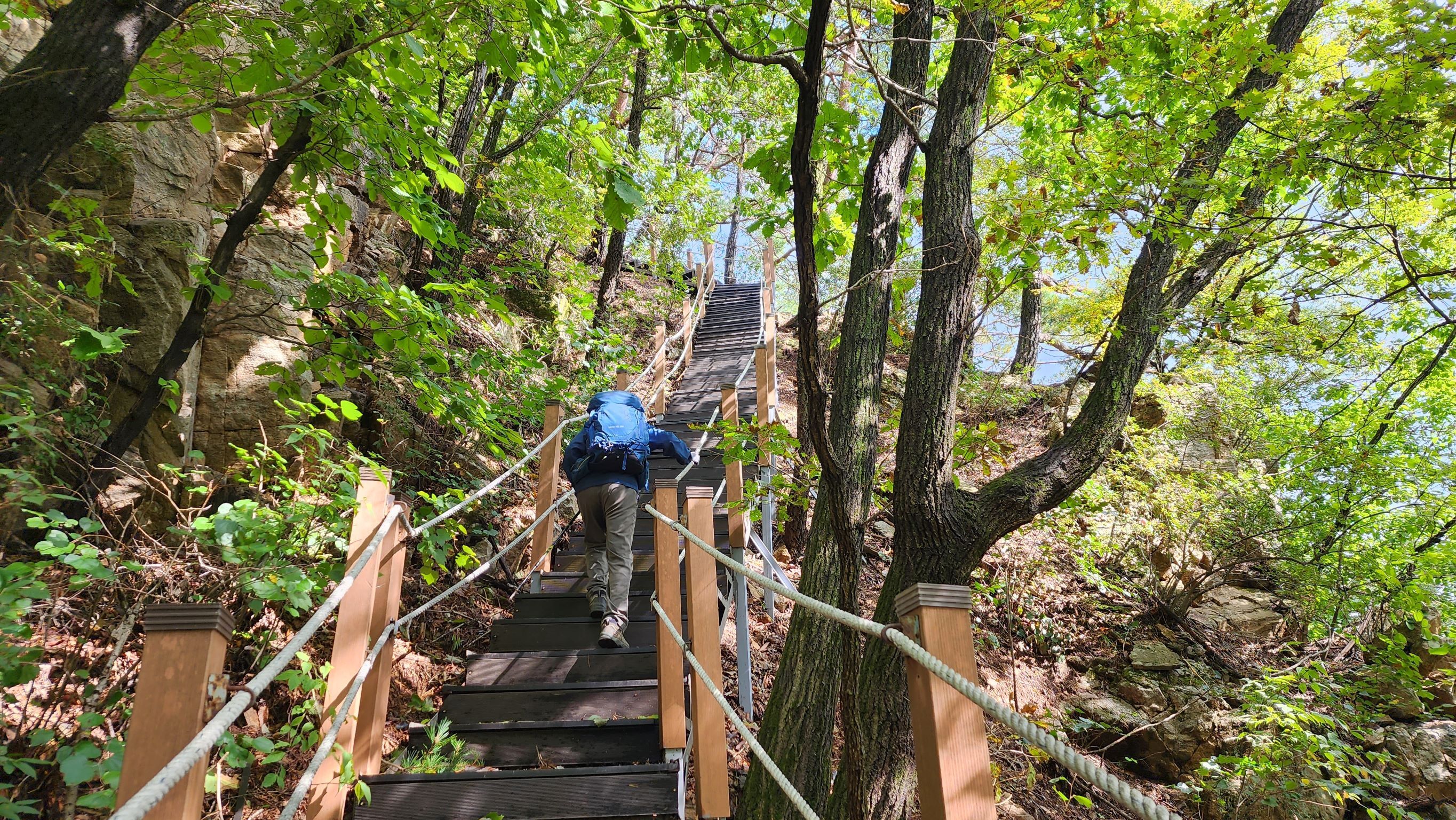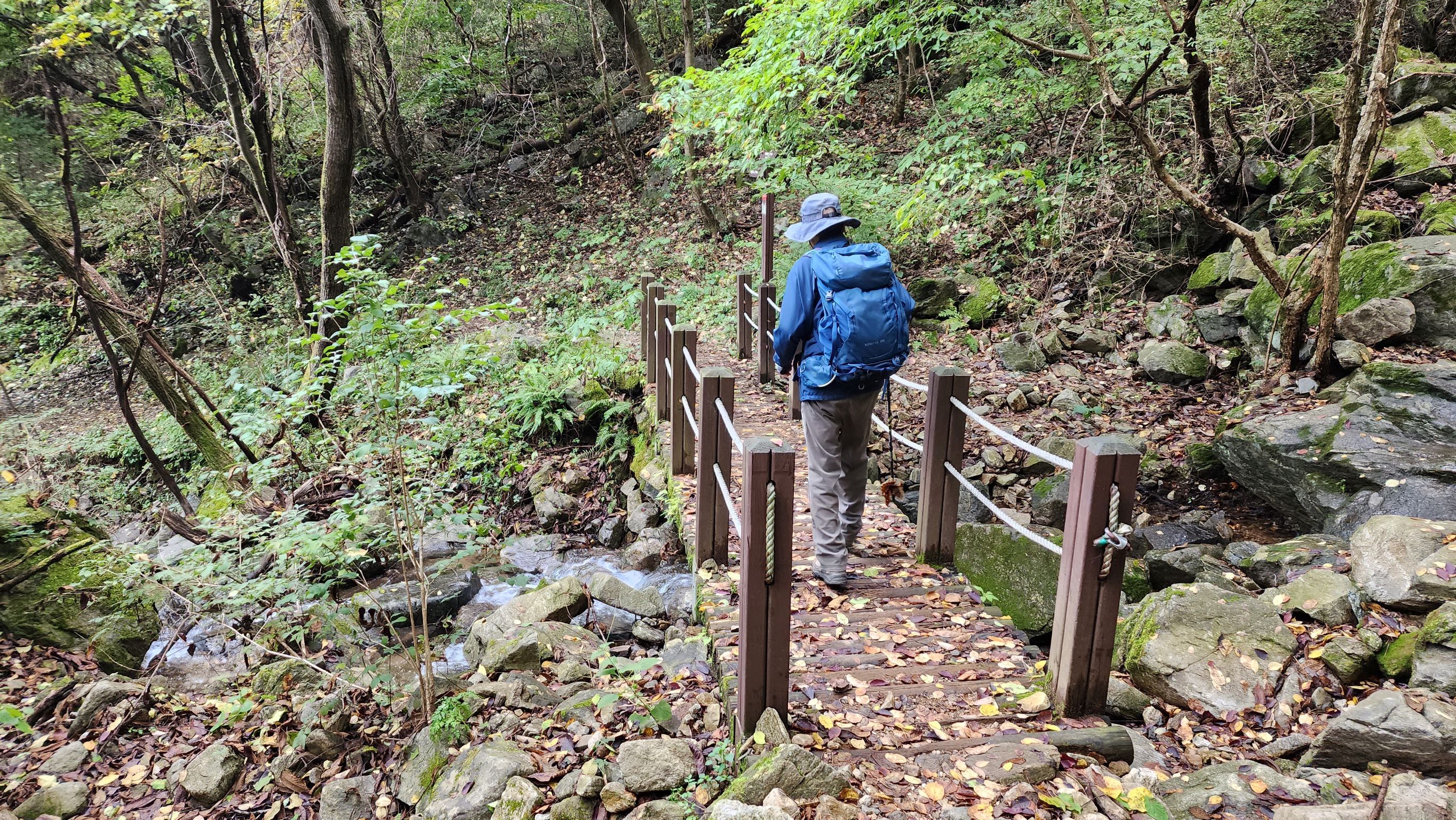 11:16 다리 건너. 호명산 등산로 입구 - 계단 따라 올라간다.