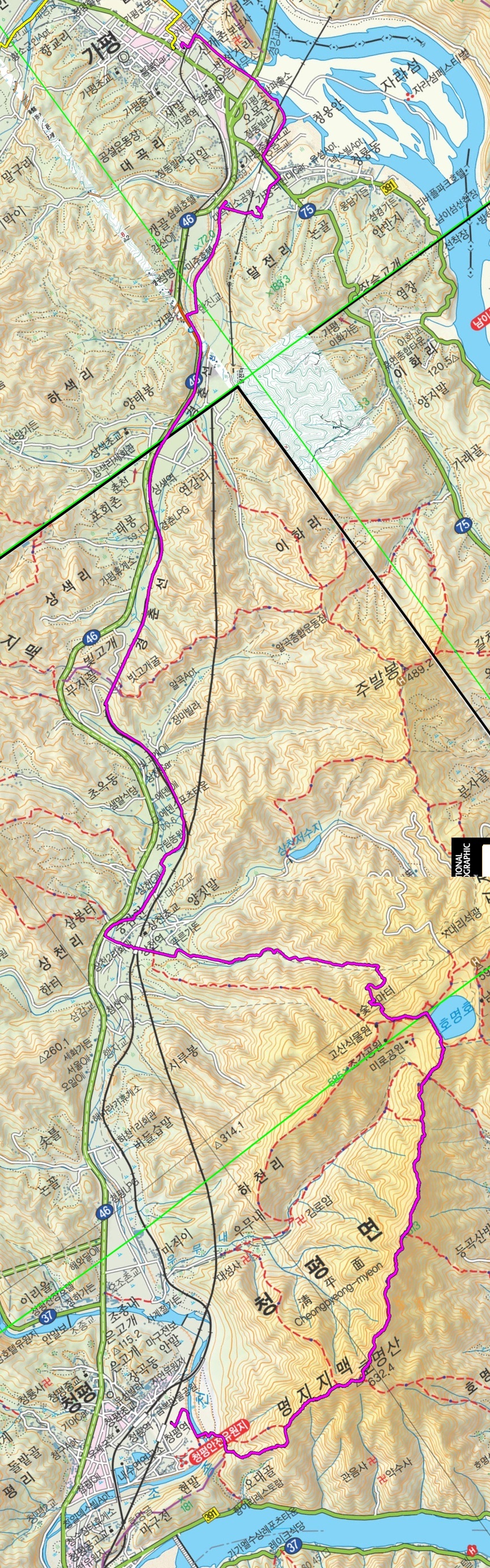11:29~11:37 청평고교 뒤로 올라온 명지지맥 마루금을 만난다.