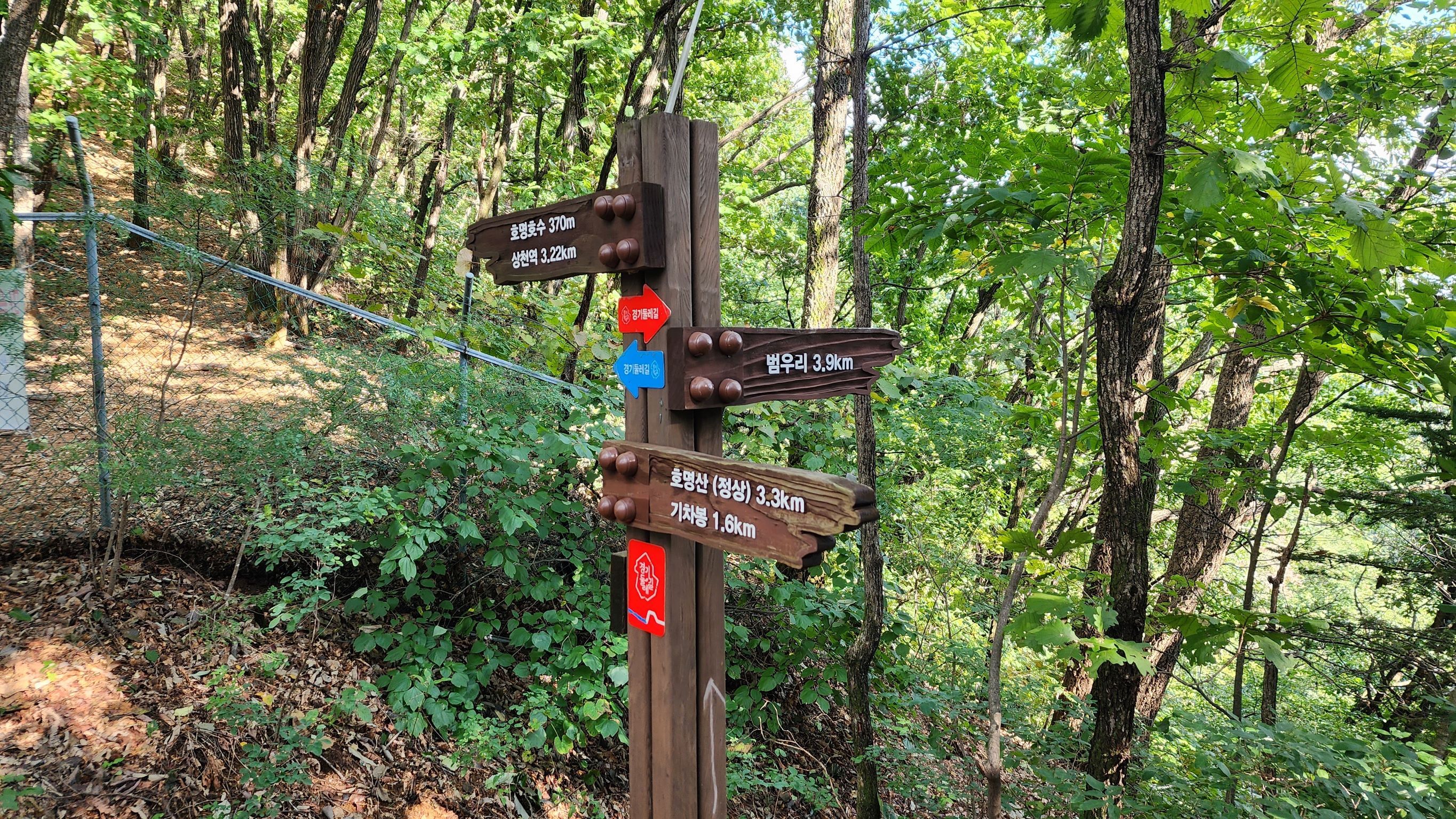 이후 호명호수까지 명지지맥 마루금을 따라간다. 휴식.