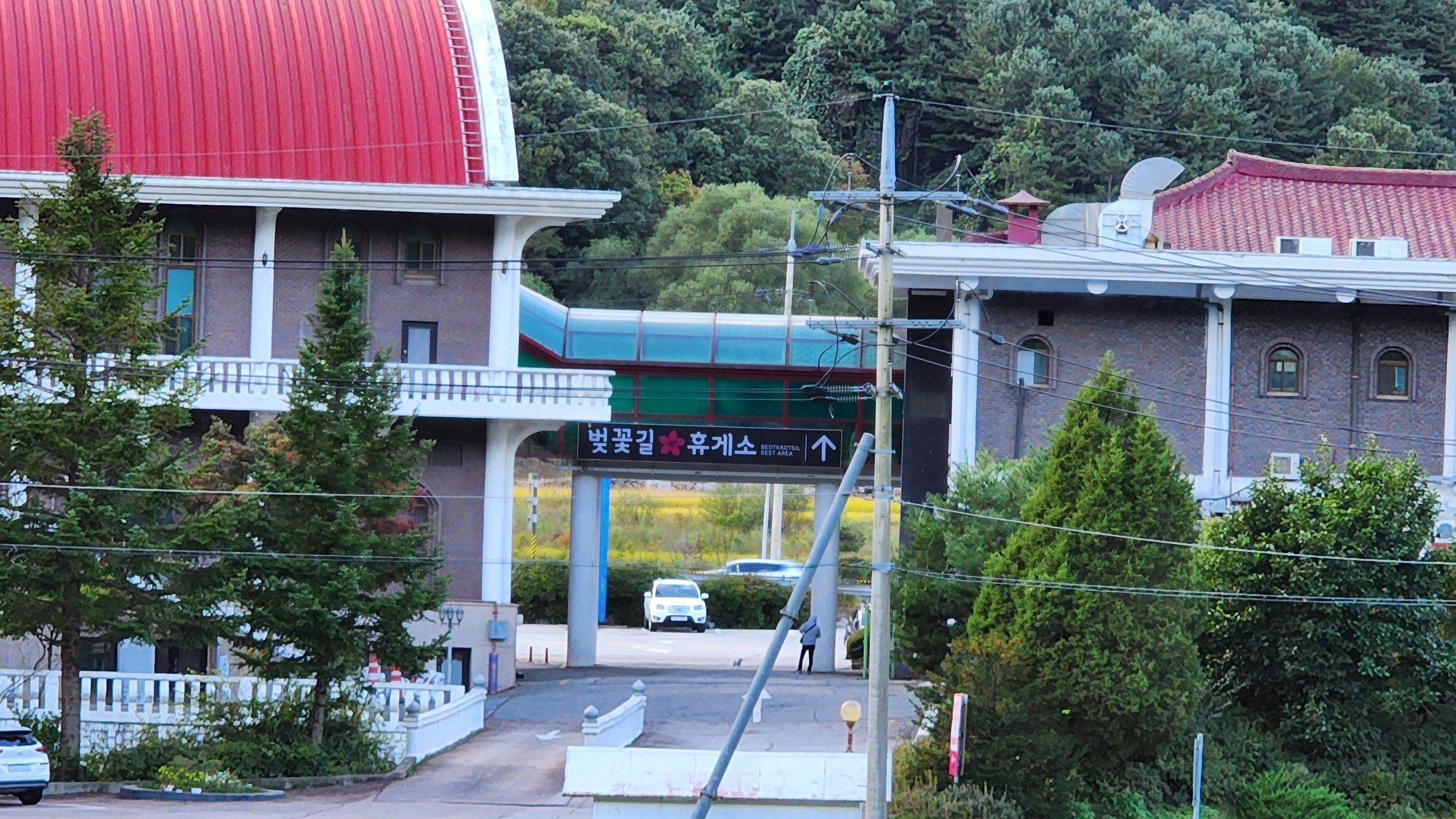 17:07 왼쪽 벚꽃길 휴게소 건물 바라보고.