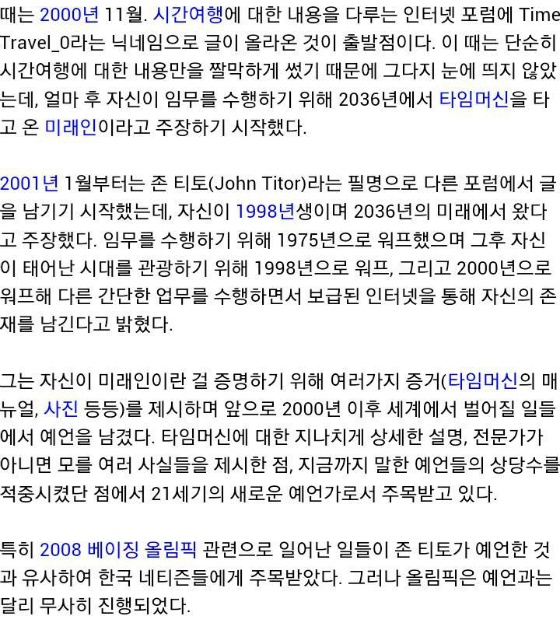 존 티토가 왔다는 존 티토의 2036년의 세계는 본인의 말로 핵전쟁으로